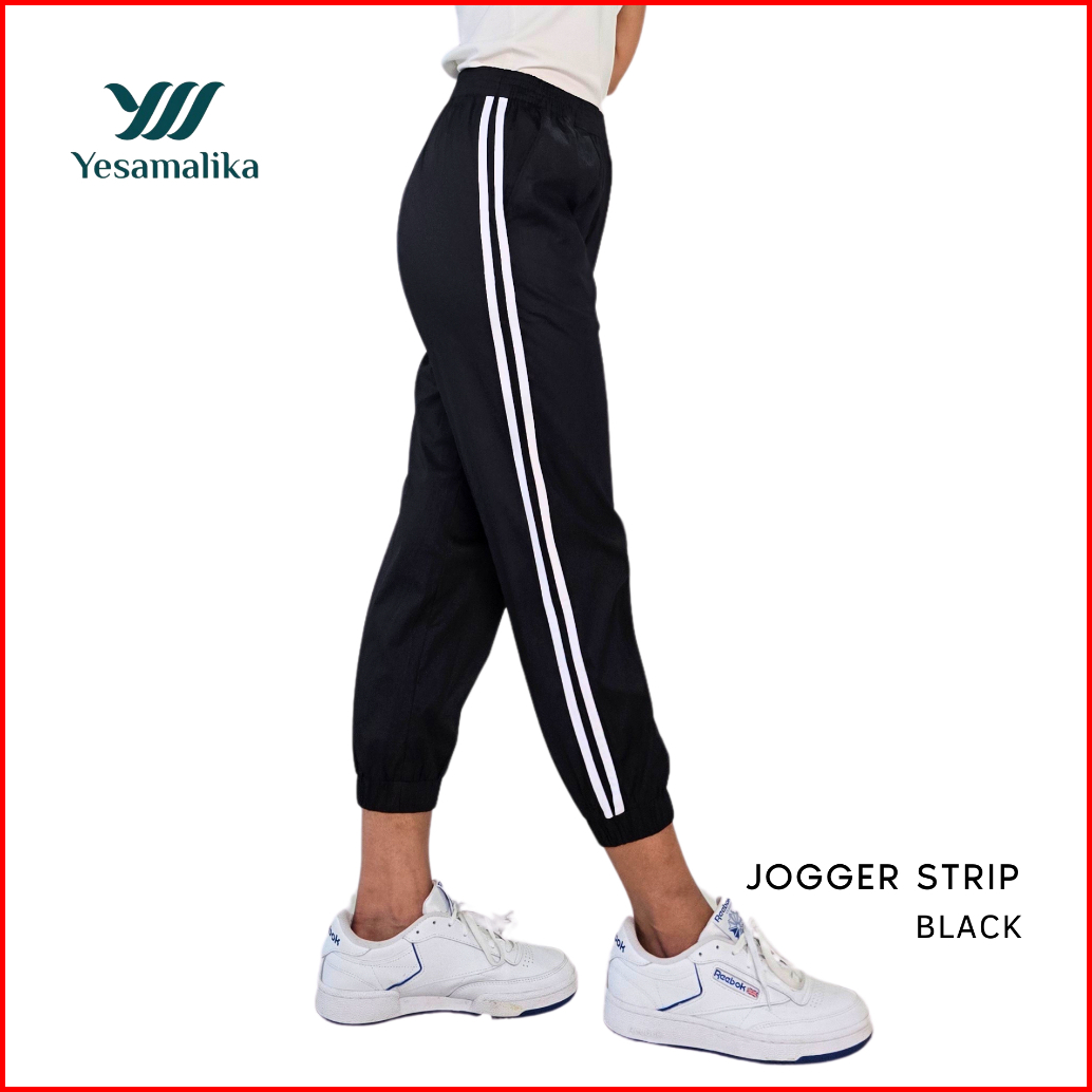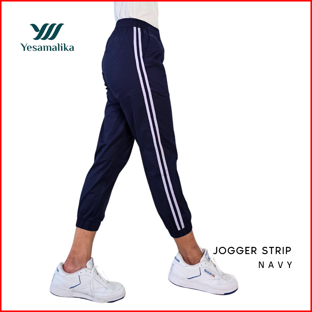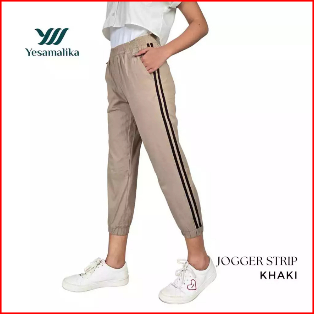 Yesamalika Joger Strip 7 8 Celana Wanita Bahan Katun Stretch Size Reguler Jumbo Super Jumbo