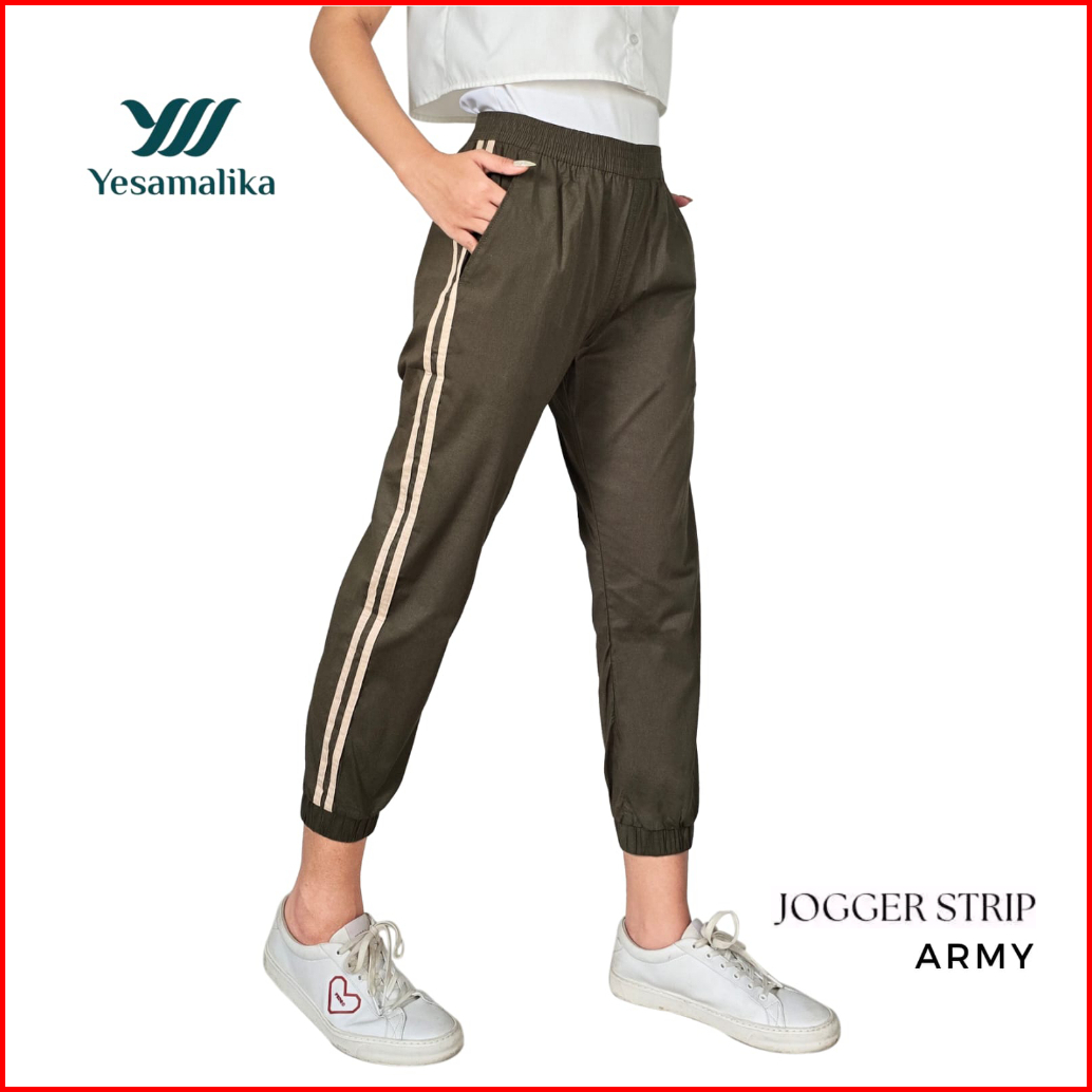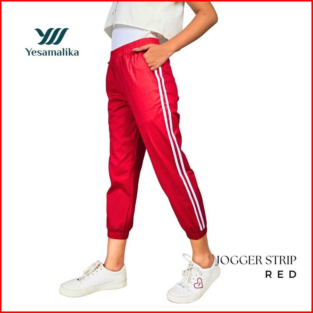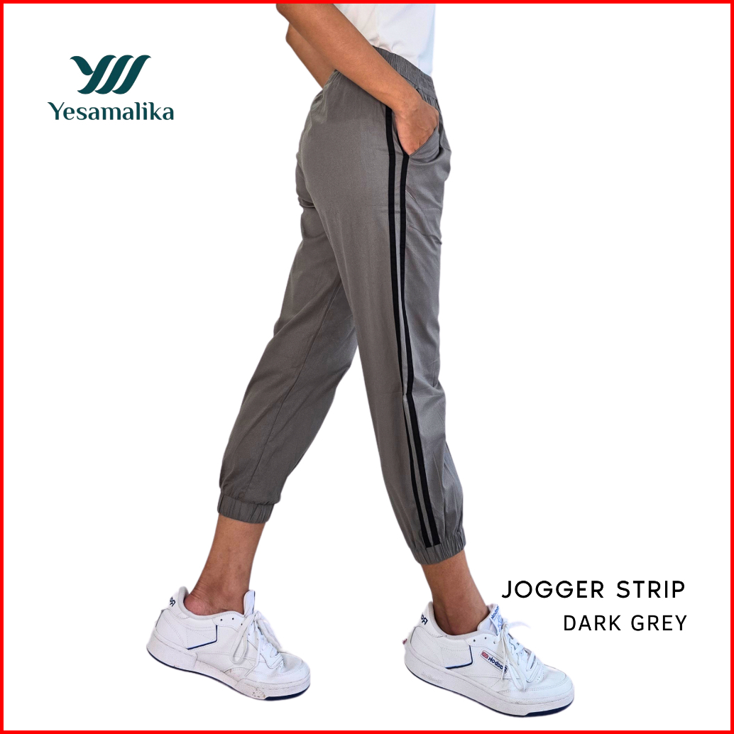 Yesamalika Joger Strip 7 8 Celana Wanita Bahan Katun Stretch Size Reguler Jumbo Super Jumbo