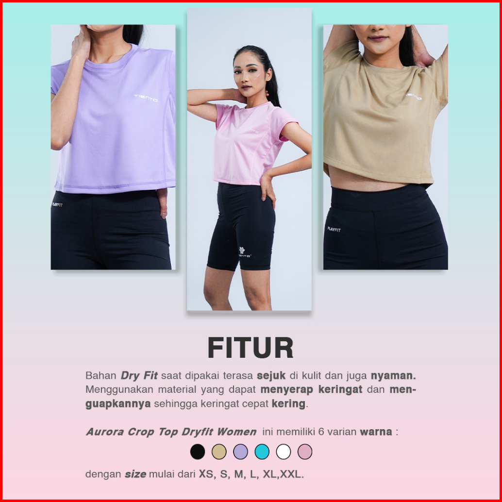 Tiento Baju Olahraga Wanita Crop Top Shirt Kaos Lengan Pendek Running Gym Lari Yoga Pound Fit