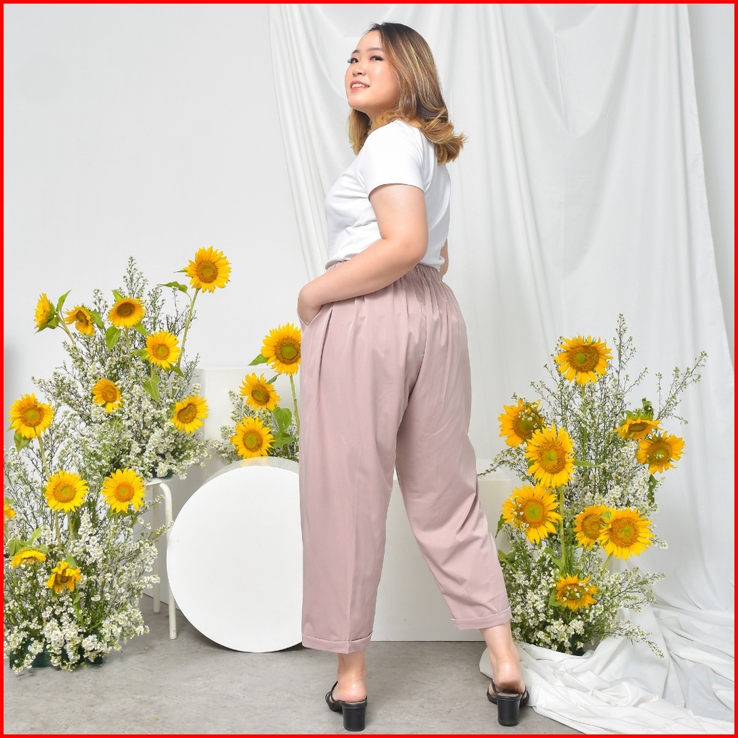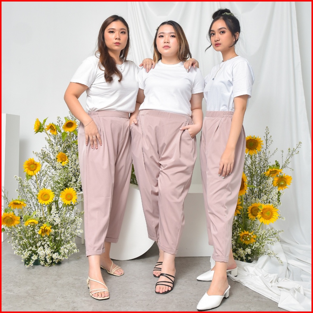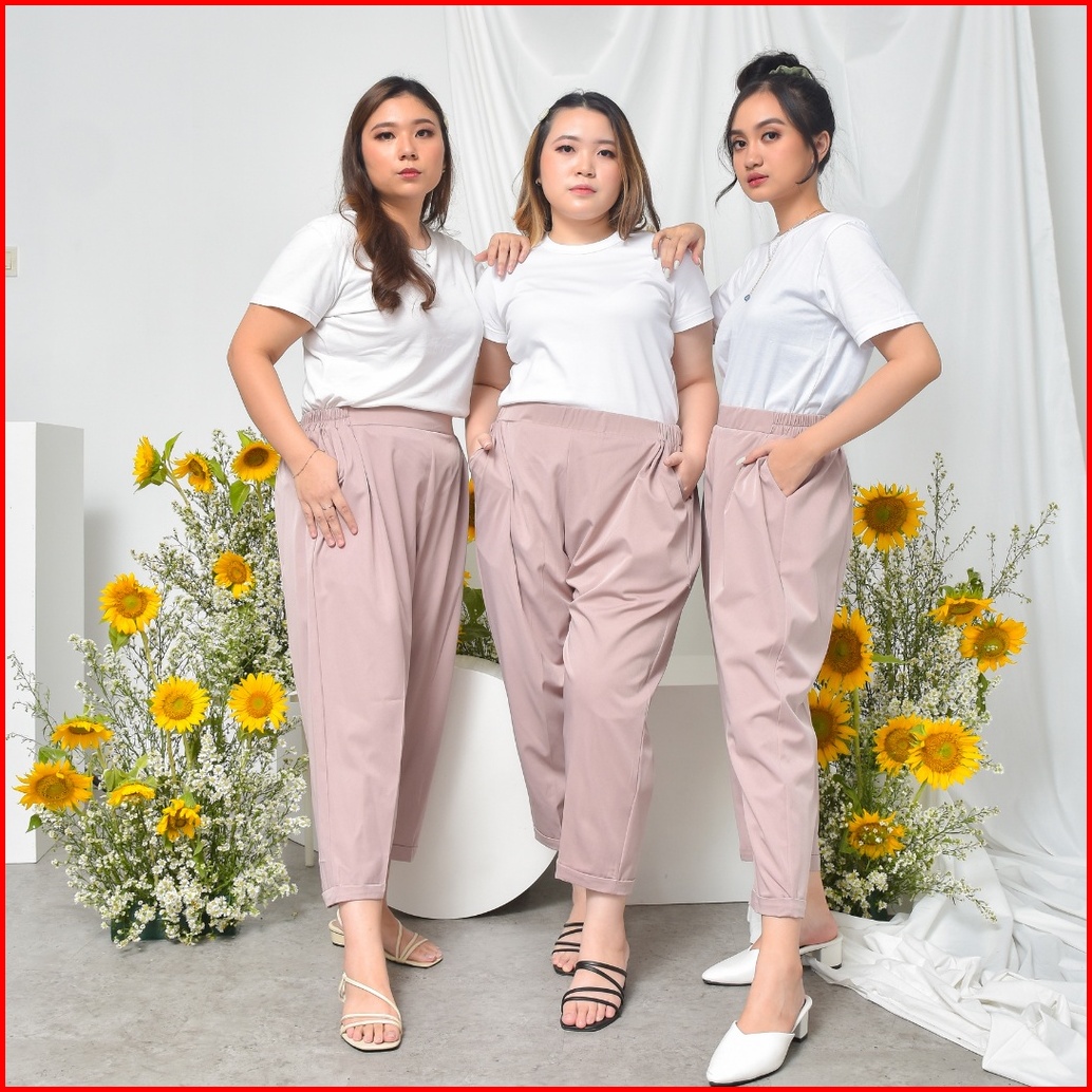 Ie.demode Karin Celana Panjang Wanita Daily Kerja Kantor Big Size Highwaist Baggy Ankle Pants Pink