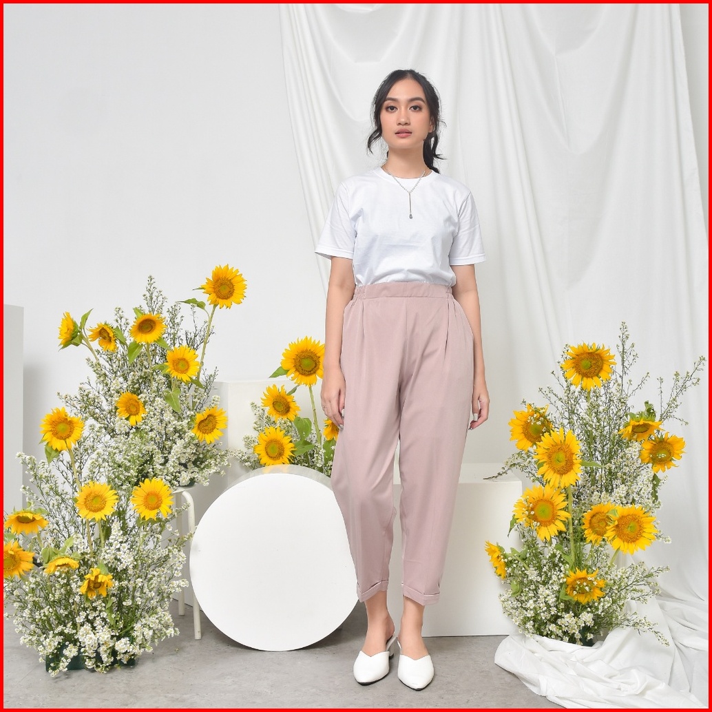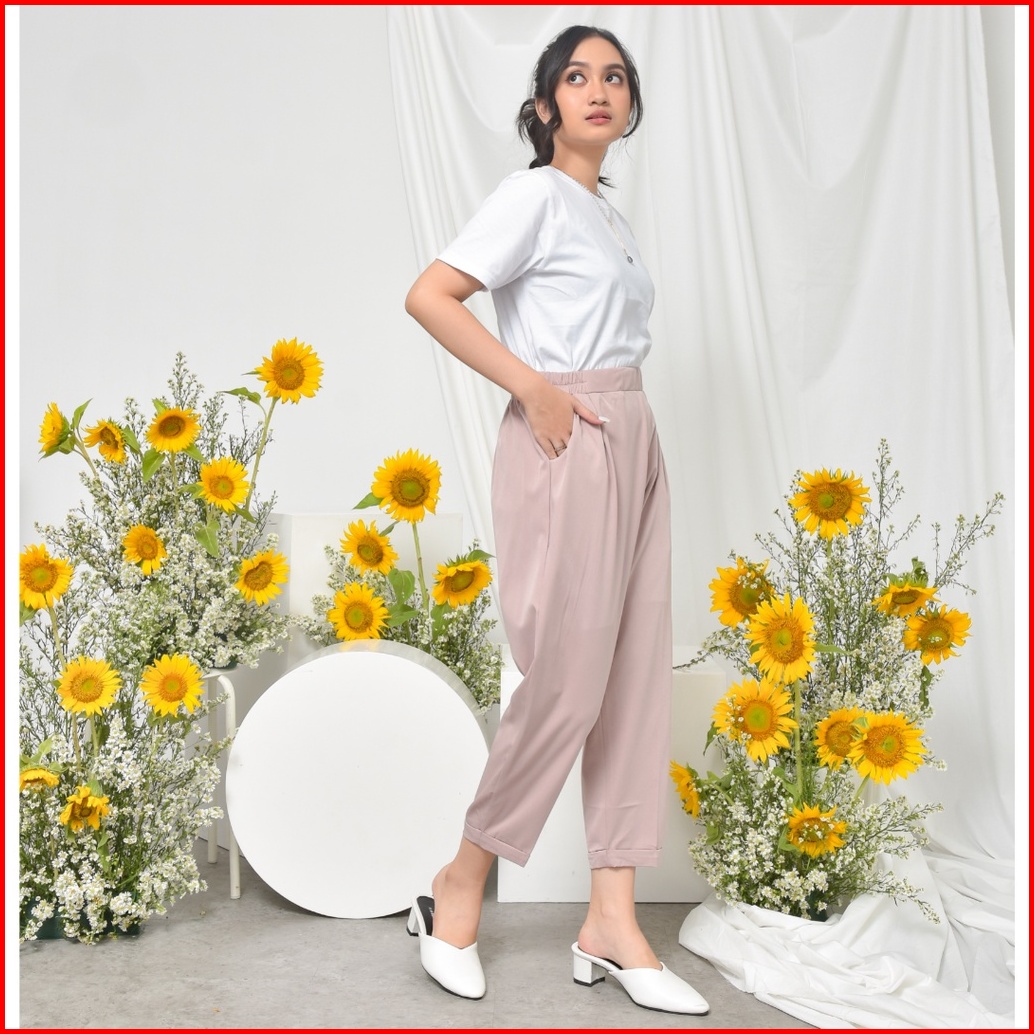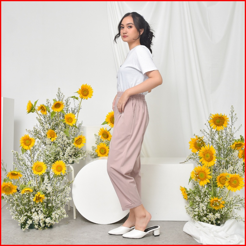 Ie.demode Karin Celana Panjang Wanita Daily Kerja Kantor Big Size Highwaist Baggy Ankle Pants Pink
