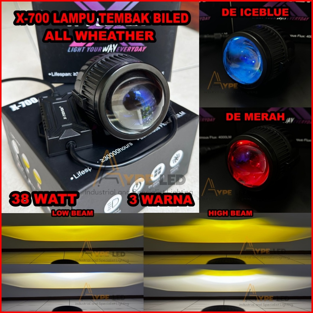 Lampu Tembak Biled X700 X-7seven 3 Warna All Wheather Biled Outdoor 38 Watt Cahaya Cut Off Biled Asli