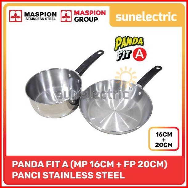 Maspion Ss Panda Set Fit A Milkpan Panci Susu 16 Cm Frypan Panci Wajan Penggorengan 20 Cm Stainless Steel Panci 2 Pcs Se