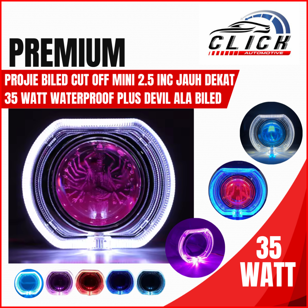 Projie Biled Cut Off Mini 2.5 Inc Jauh Dekat 35 Watt Waterproof Plus Devil Ala Biled Full Alumunium Waterproof