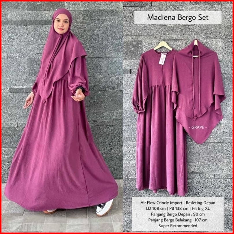 Set Gamis Syar I Cringkel Madiena Set Bergo Dress Gamis Abaya