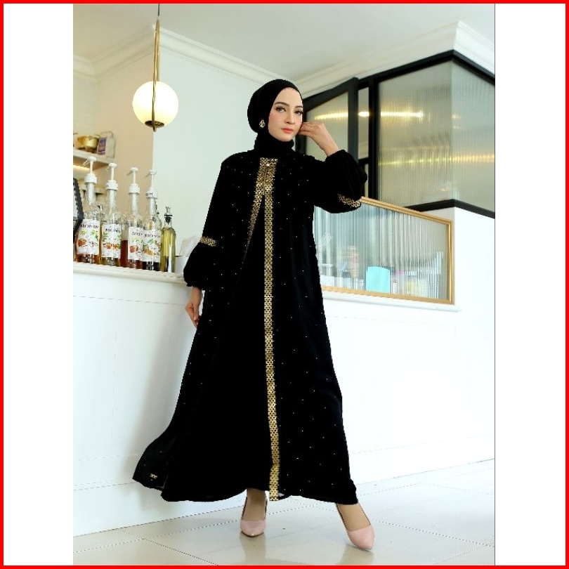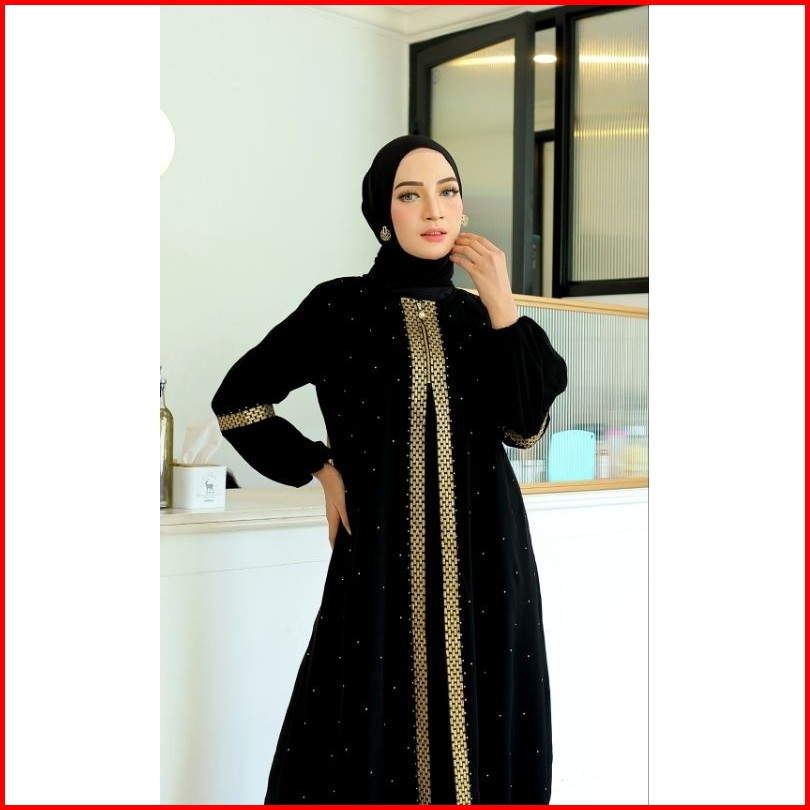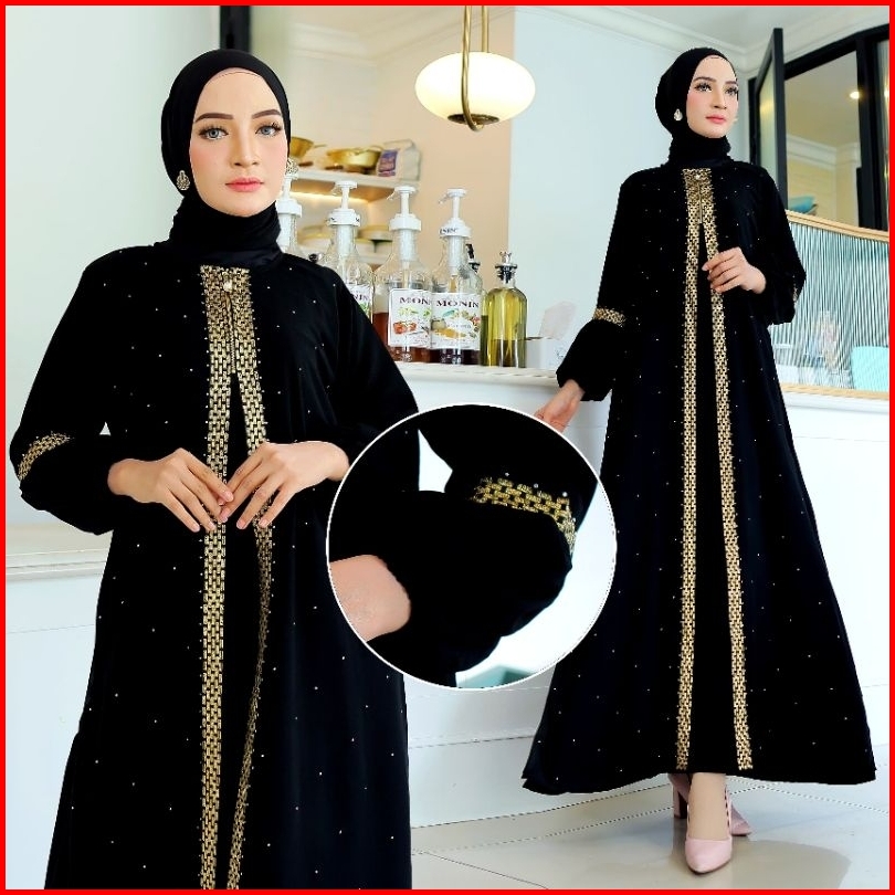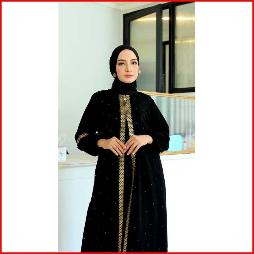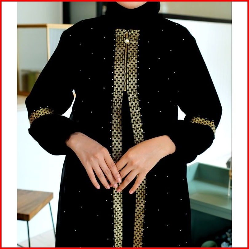 Gallery Exclusive Abaya Ziper Renda Gamis Syari Hitam Bordir Turkey Muslimah Cantik Turki