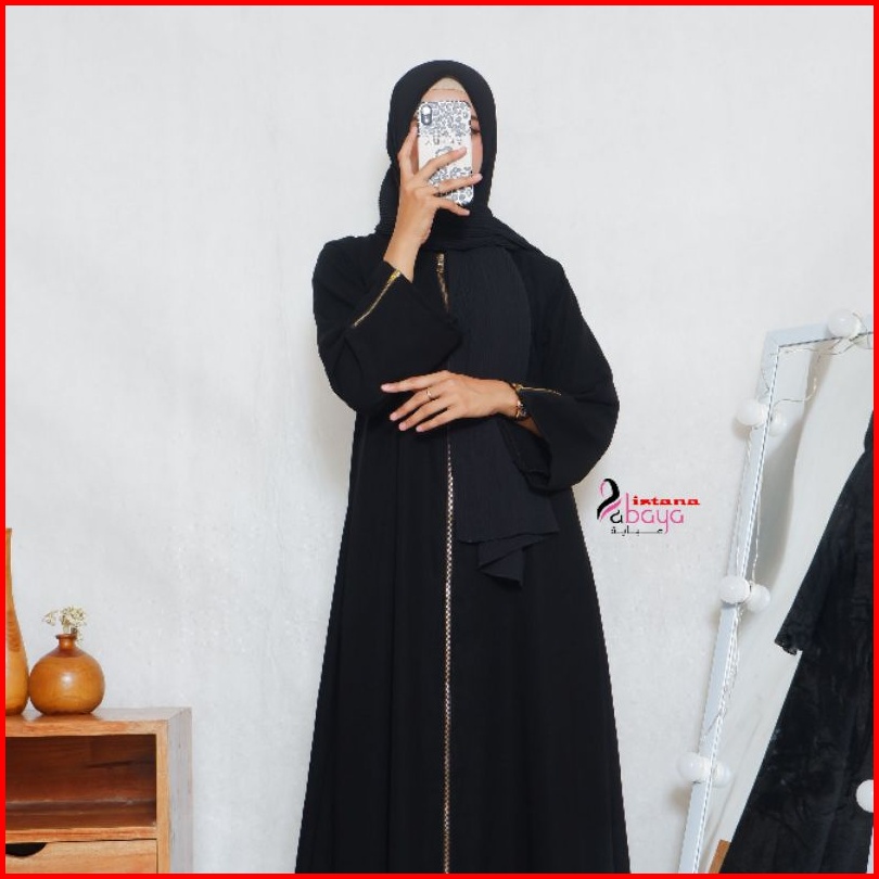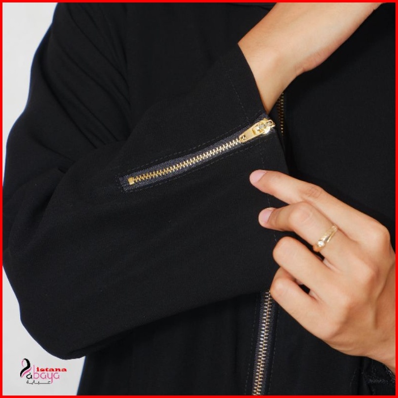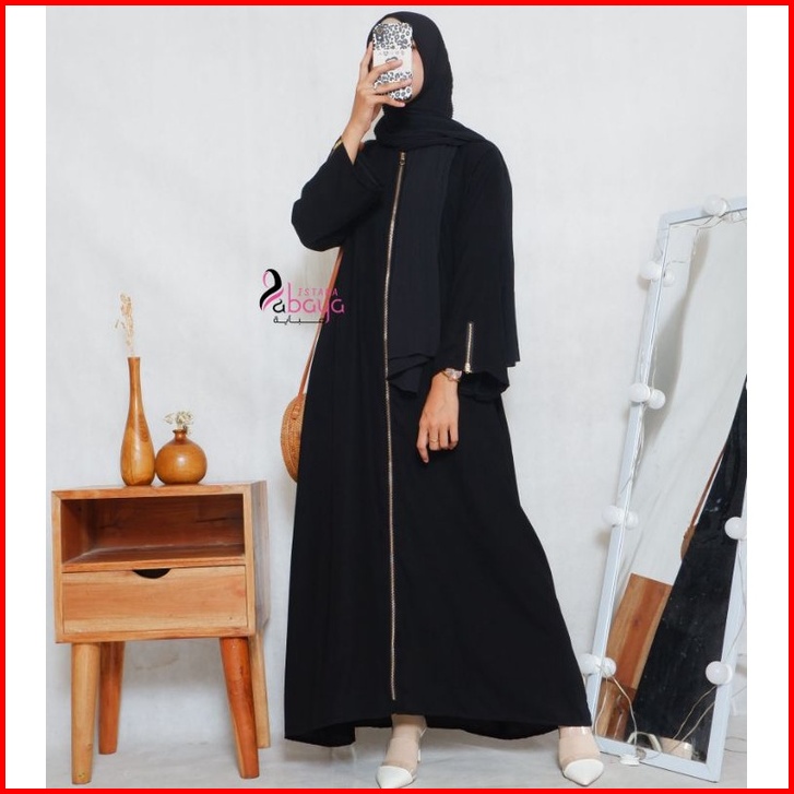 Abaya Polos Ziper Full Dipadu Kain Hitam Pekat Simpel Minimalis Cantik Bgt