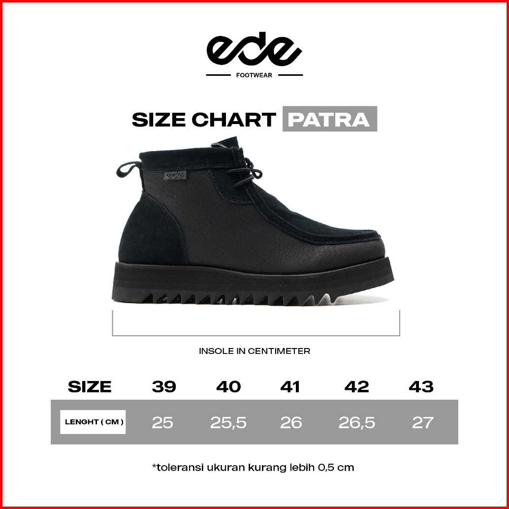 Edefootwear Patra - Sepatu Boots Wallabees Casual Suede Tali Hitam Pria