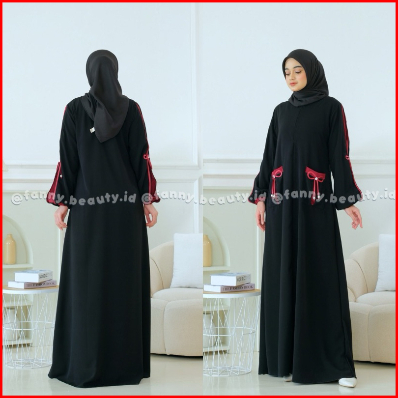 Dania Ribbon Abaya Jetblack Adem Dan Ringan