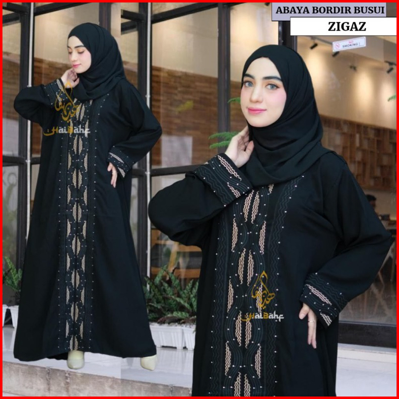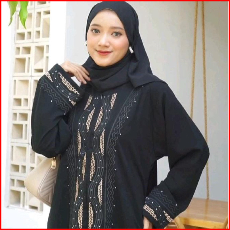 Abaya Bordir Gamis Hitam Polos Bahan Jetblack Saudi