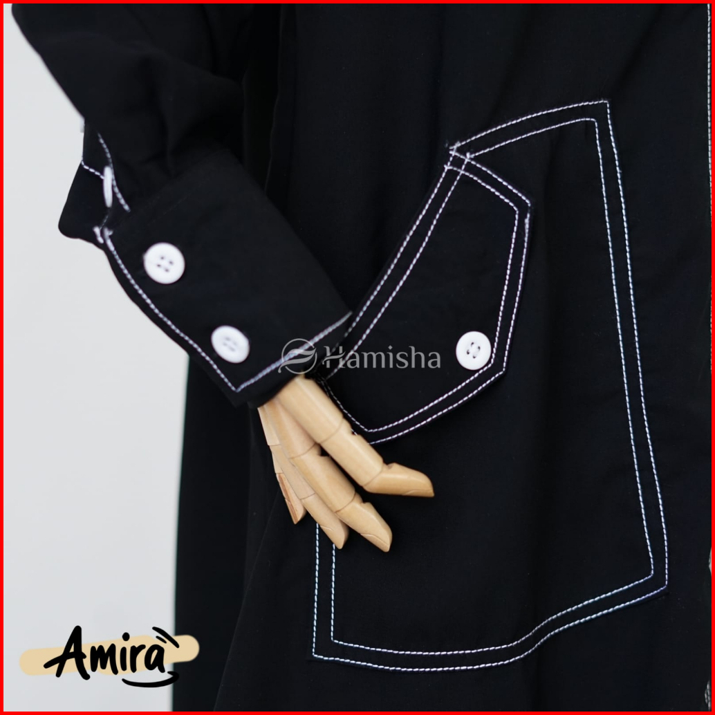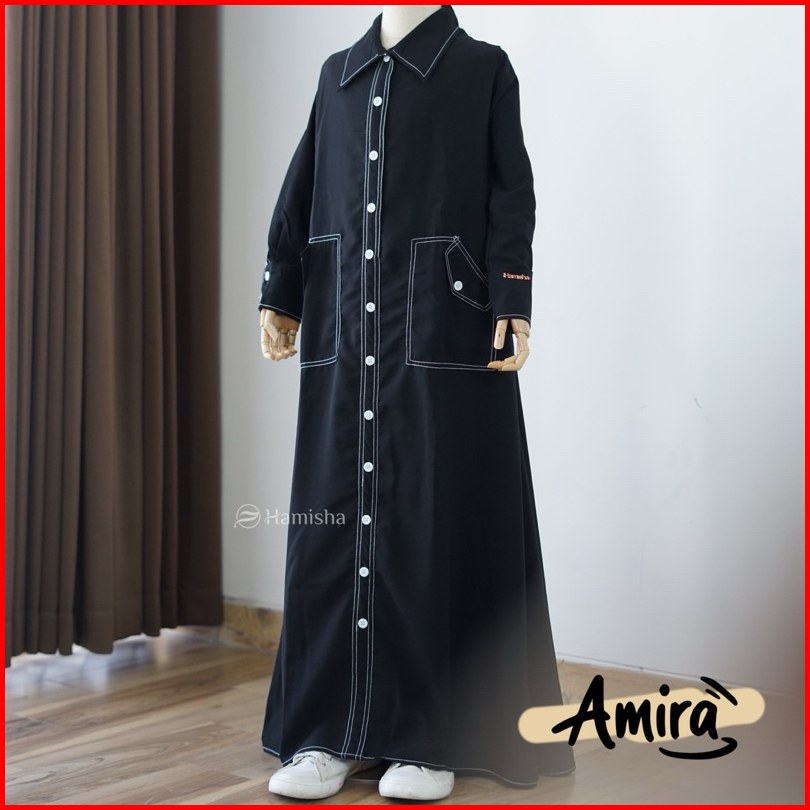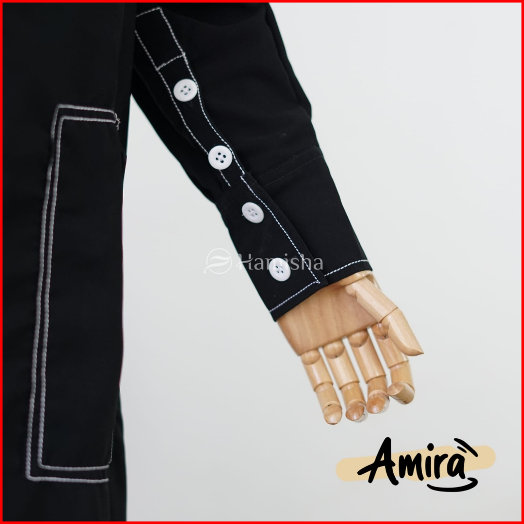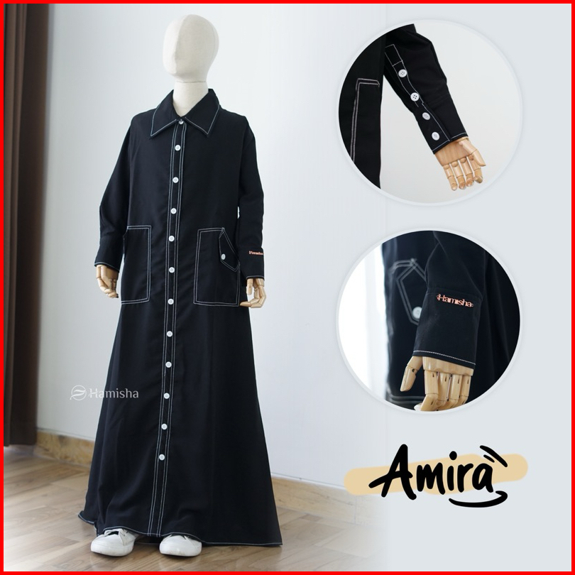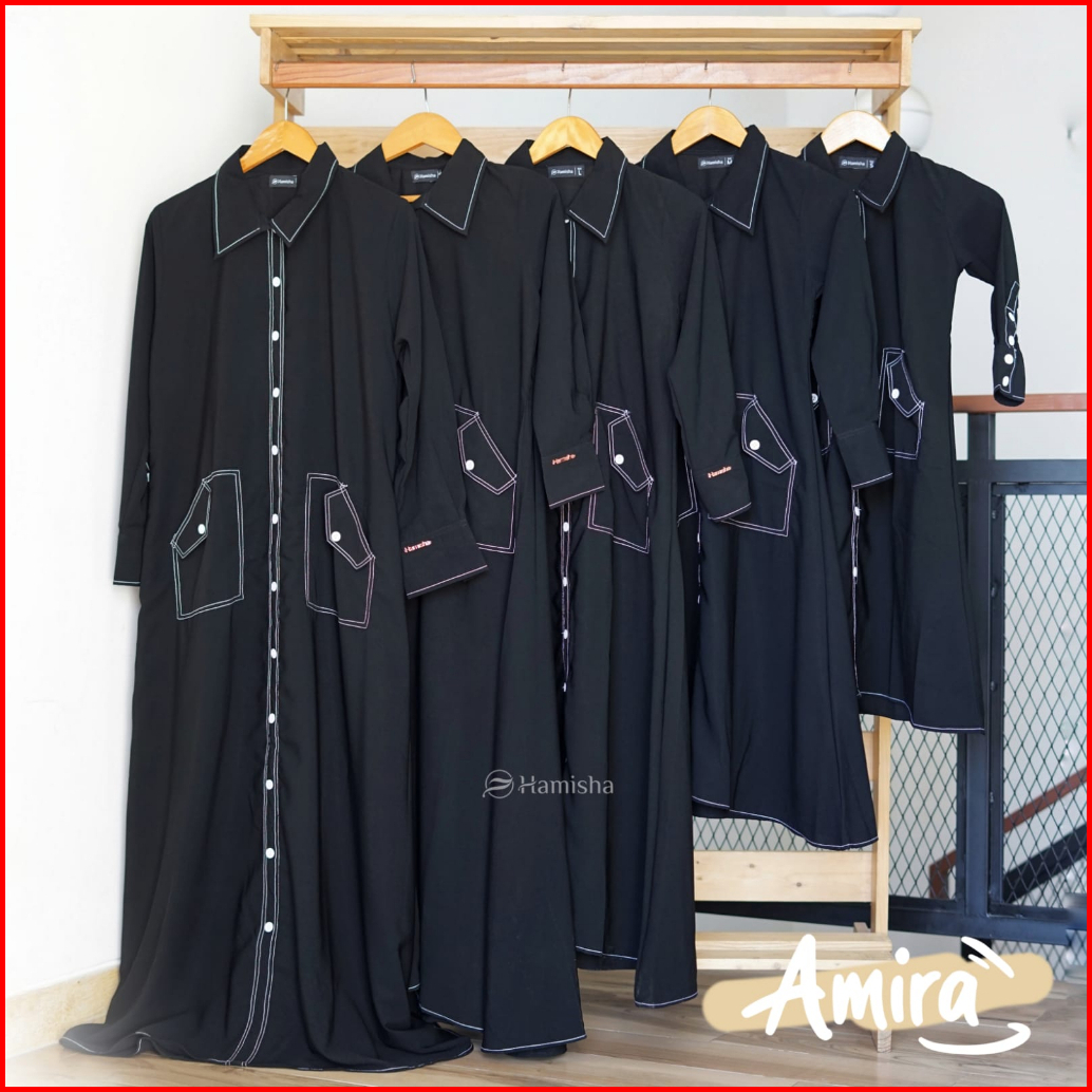 Amira Dress Simple Abaya Couple Mom Kids Abaya Black Elegant Kancing Aktif Wudhu Friendly By Hamisha