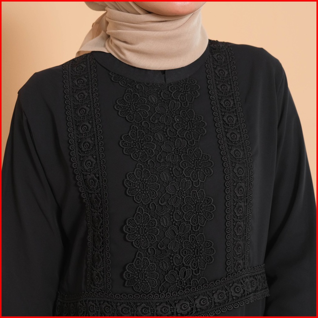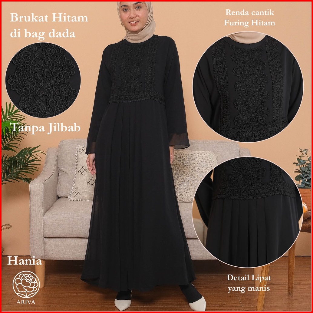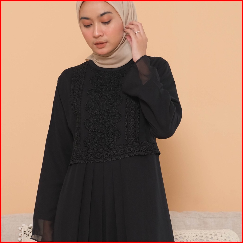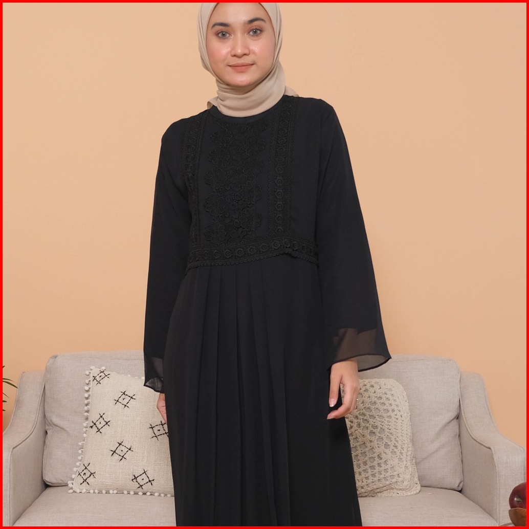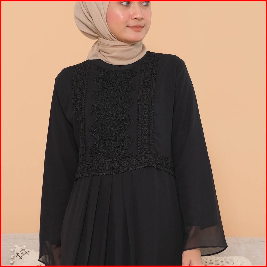 Gamis Hania Brukat Hitam - Gamis Muslim Wanita - Gamis Lebaran Hitam Umroh Hitam By Ariva