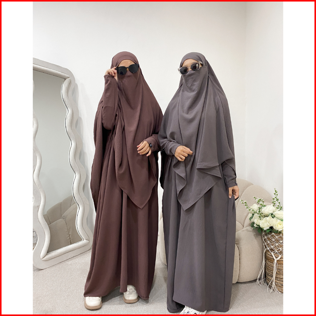Zuri Label - Maysara Set Fk Antem Bisht Abaya Batwing Set French Khimar Free Cadar Tali