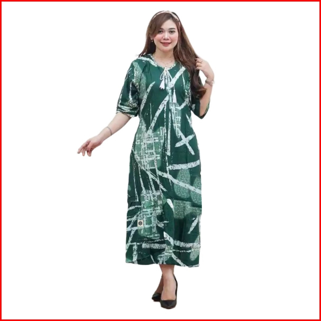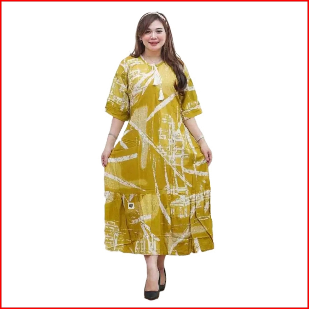 Disya.id Dress Daster Rayon Motif Abstrak Monochrome Ld 120 Cm