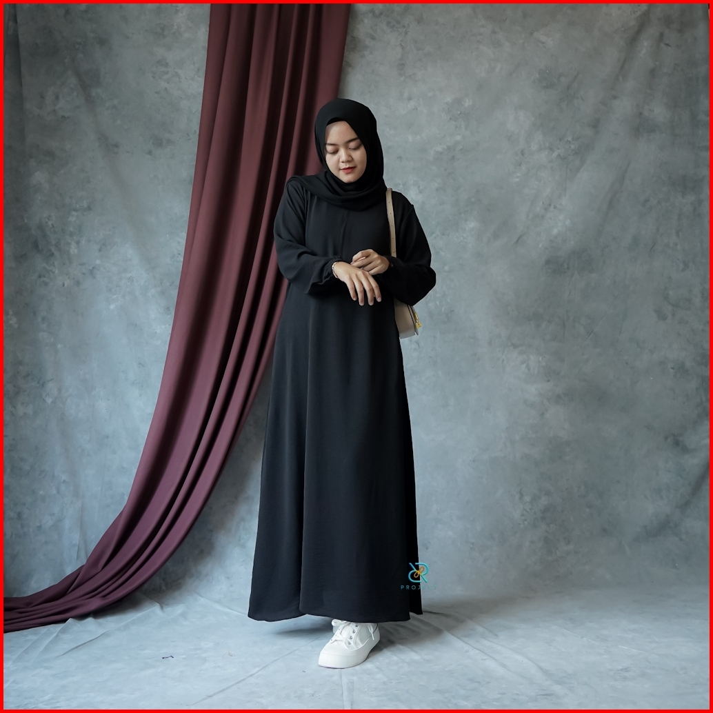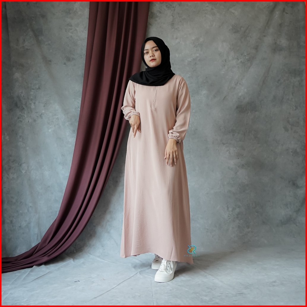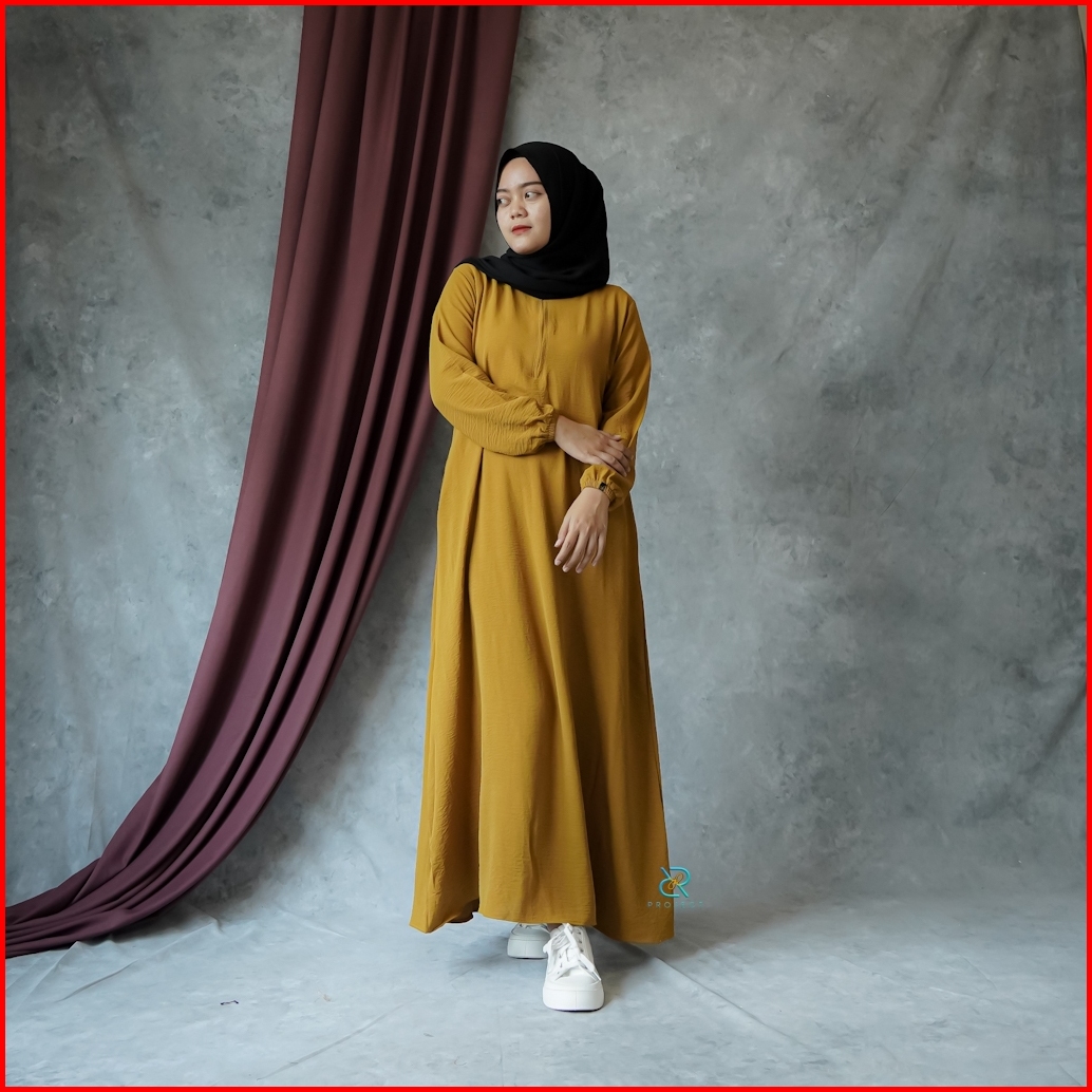 Gamis Crinkle Polos Lengan Karet Size S M L Xl Fashion Muslim Wanita Terbaru Rhino Dress