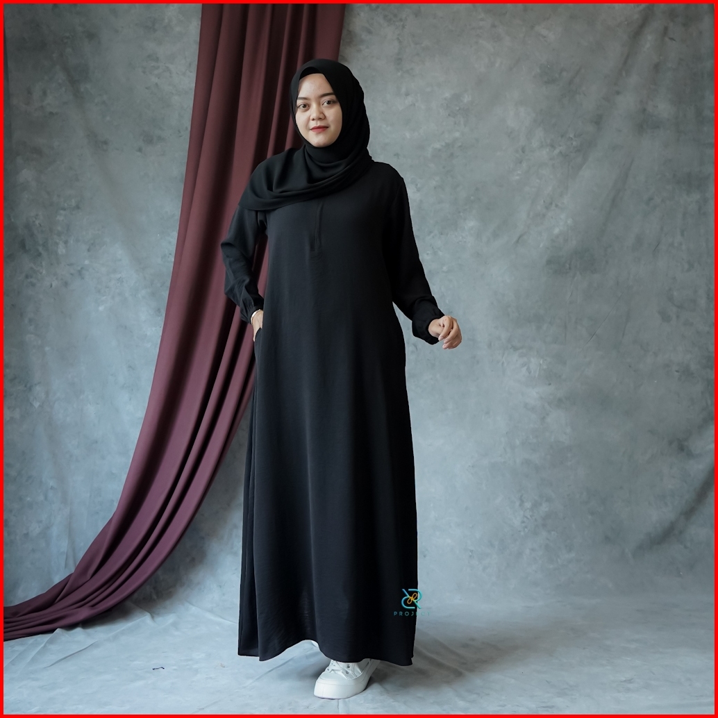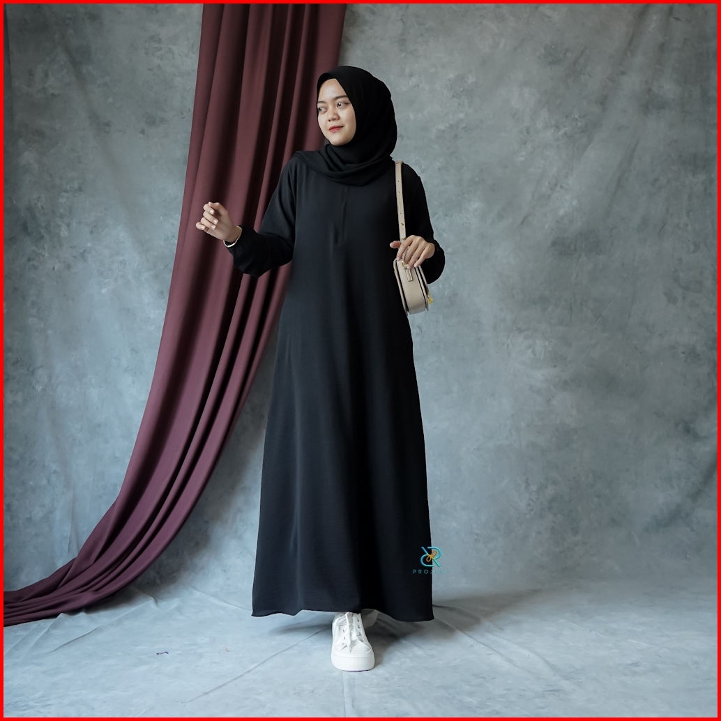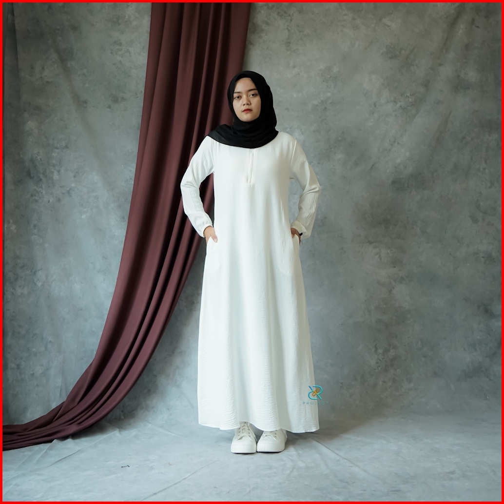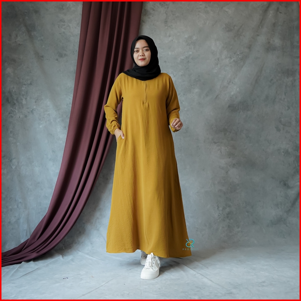 Gamis Crinkle Polos Lengan Karet Size S M L Xl Fashion Muslim Wanita Terbaru Rhino Dress