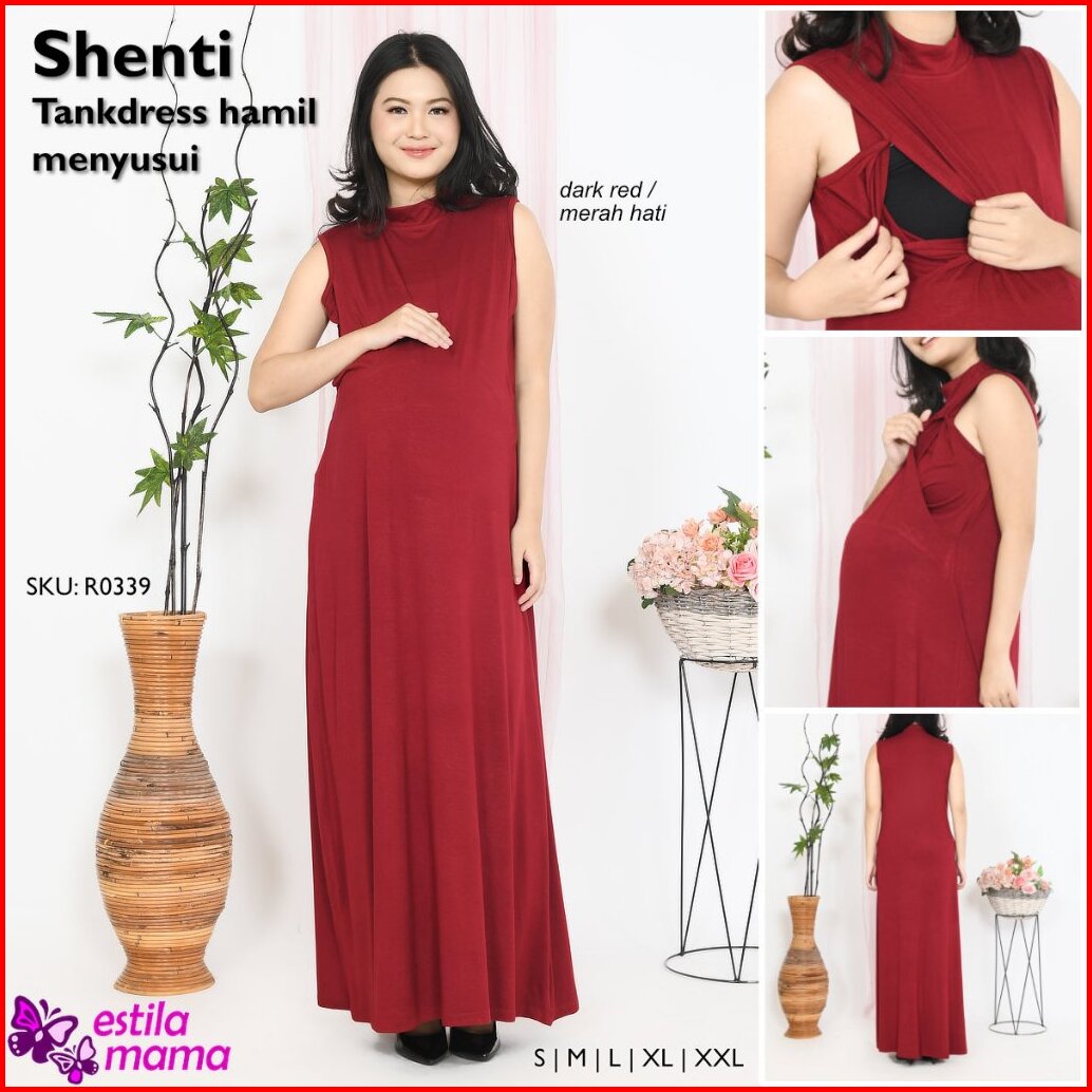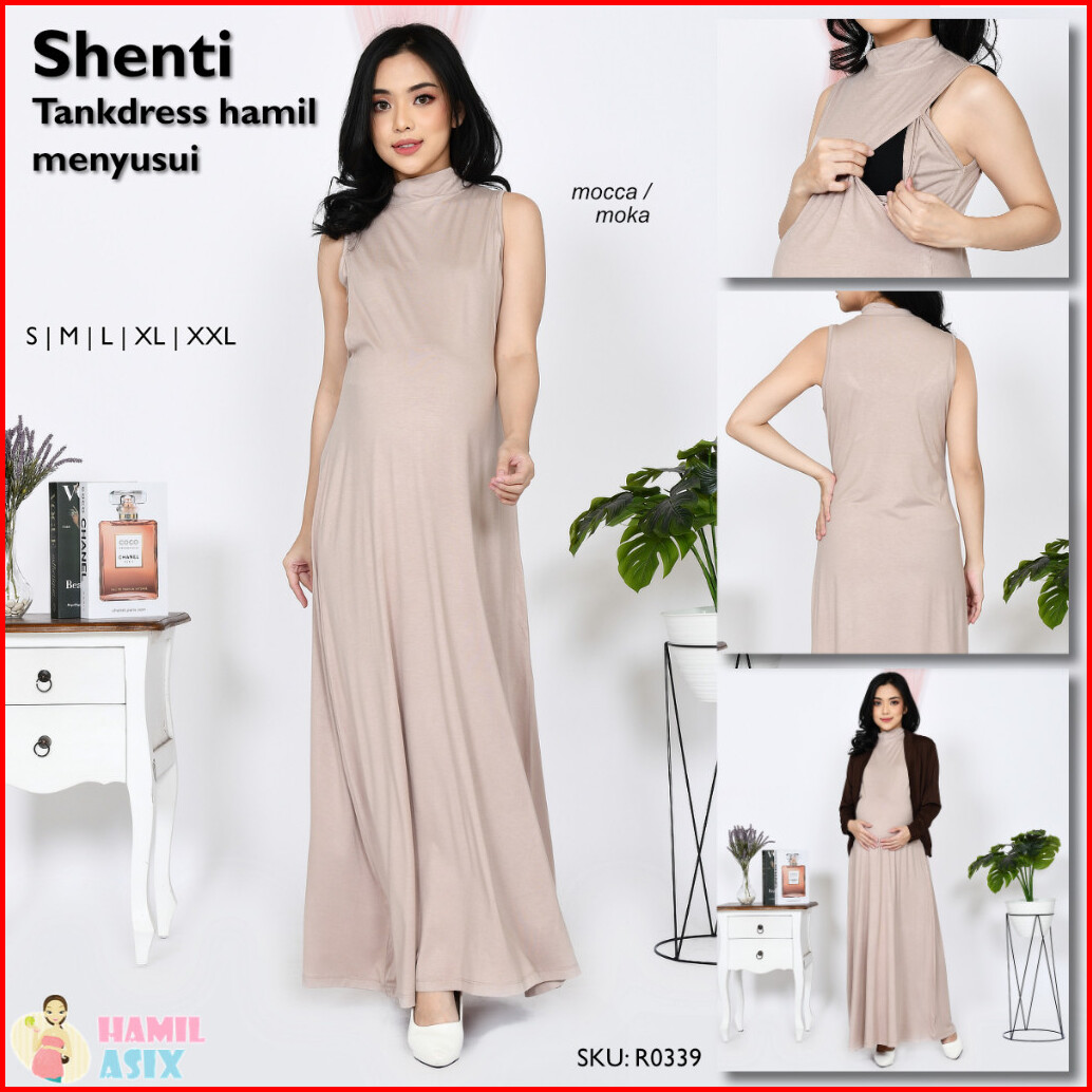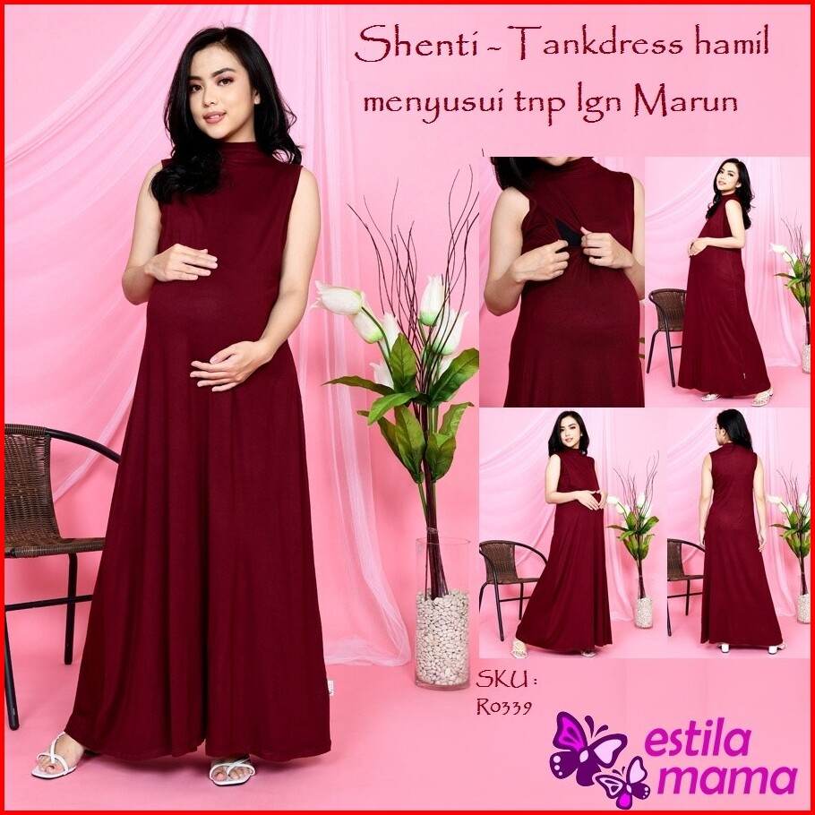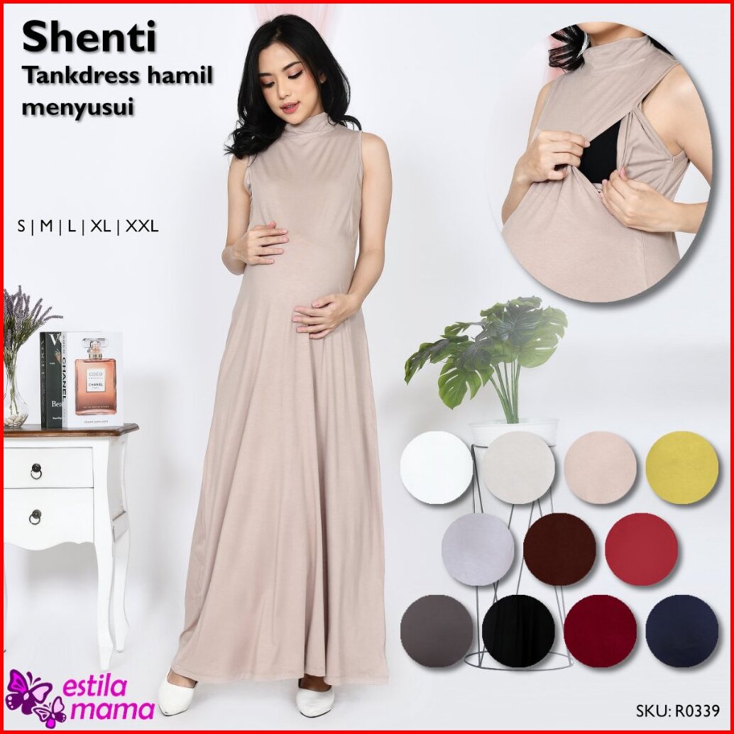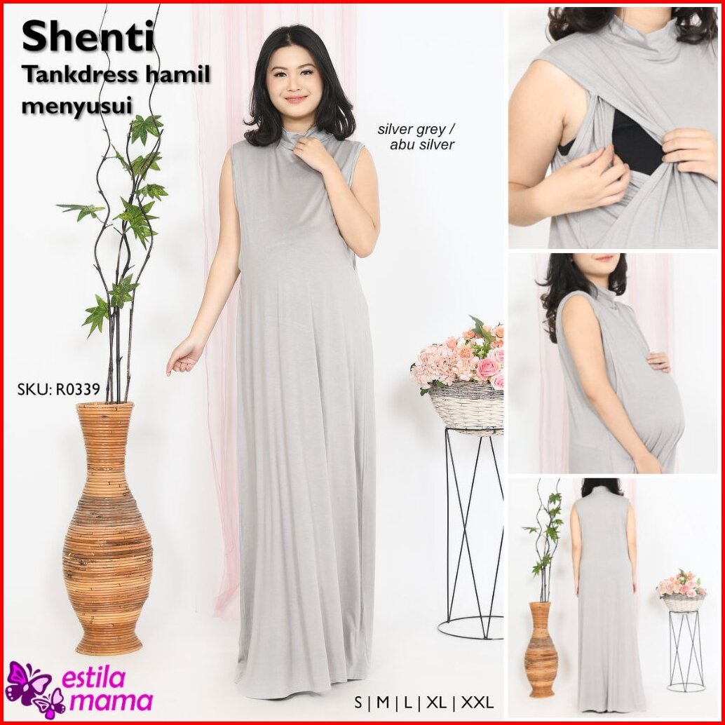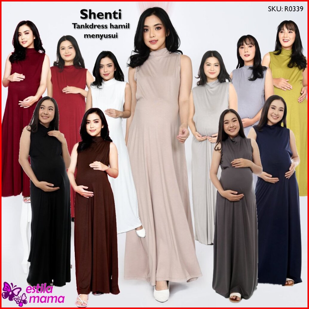 Estila Mama - Shenti Tankdress Manset Gamis Inner Maxi Hamil Menyusui Rayon Spandex - Abu Biru Hitam Putih Krem Moka Mar