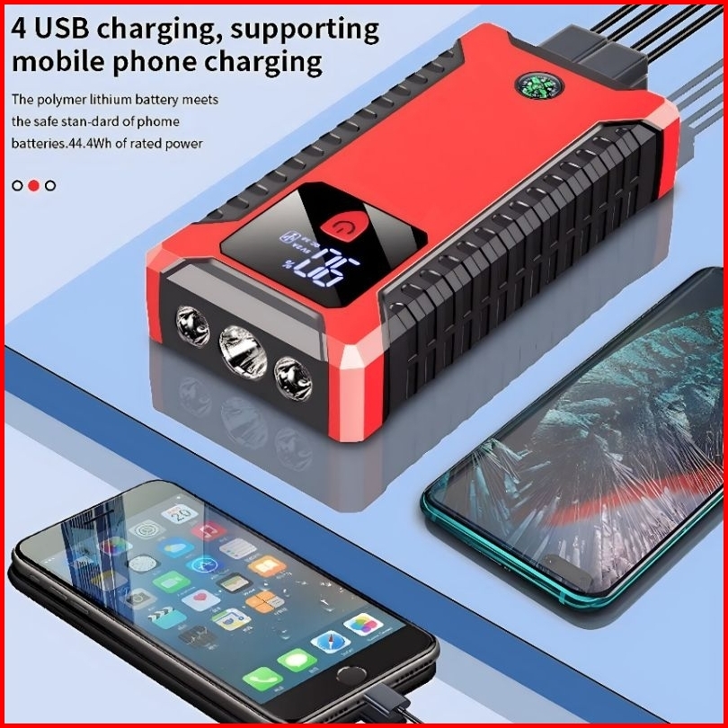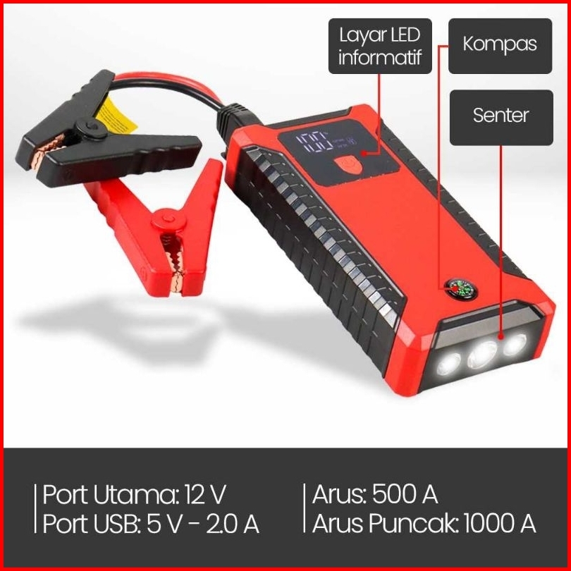 Jumper Aki Mobil Power Bank 20000mah 12v 600a 4 Port Usb Pompa Ban Elektrik Car Jump Starter Emergency Jx27