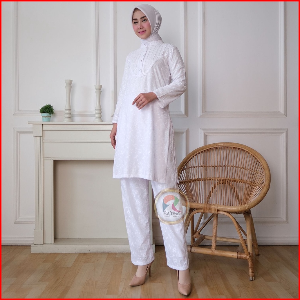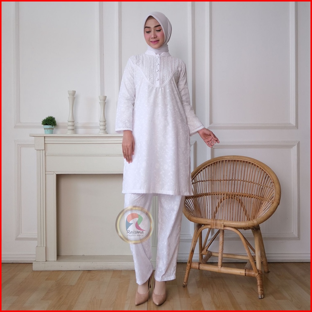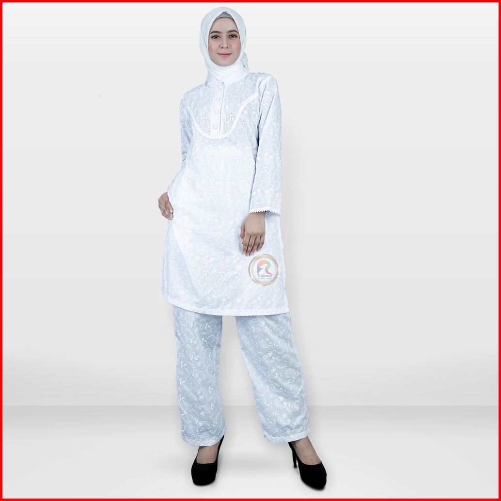 Raisma - Hannah Baju Setelan Wanita Warna Putih Perlengkapan Umroh Haji Busana Ihrom Wanita