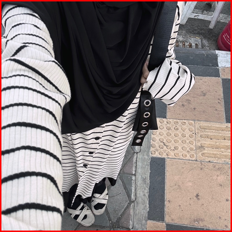 Knit Stripe Hijab Shafiyya Tanpa Furing Xs-xxl