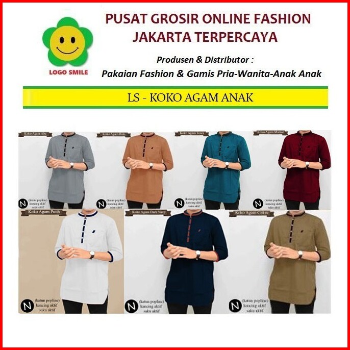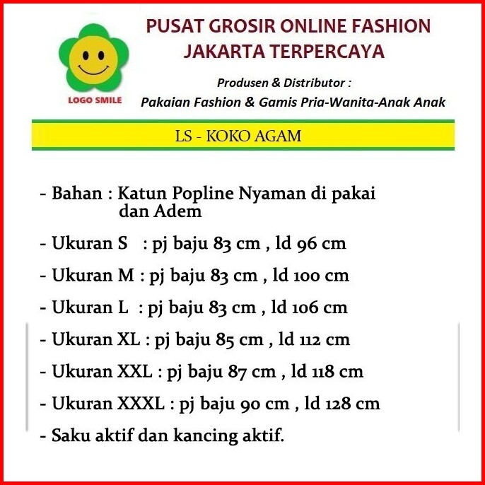 Koko Agam - Logo Smile Ls - Ukuran S-3xl - Matt Katun Poplin