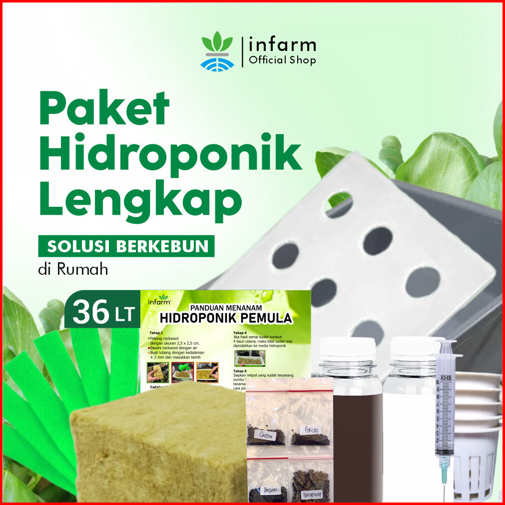 Infarm - Paket Hidroponik 36 Lubang Premium Starter Kit Super Lengkap Dengan Bak Hidroponik Netpot Rockwool Nutrisi Ab M