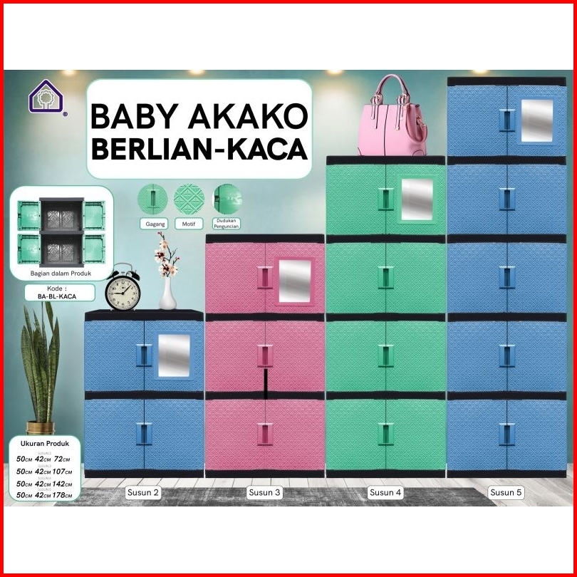 Akako - Lemari Kaca Bilpin Jumbo Pakaian Plastik 2 Pintu Susun 2 3 4 5 Berlian