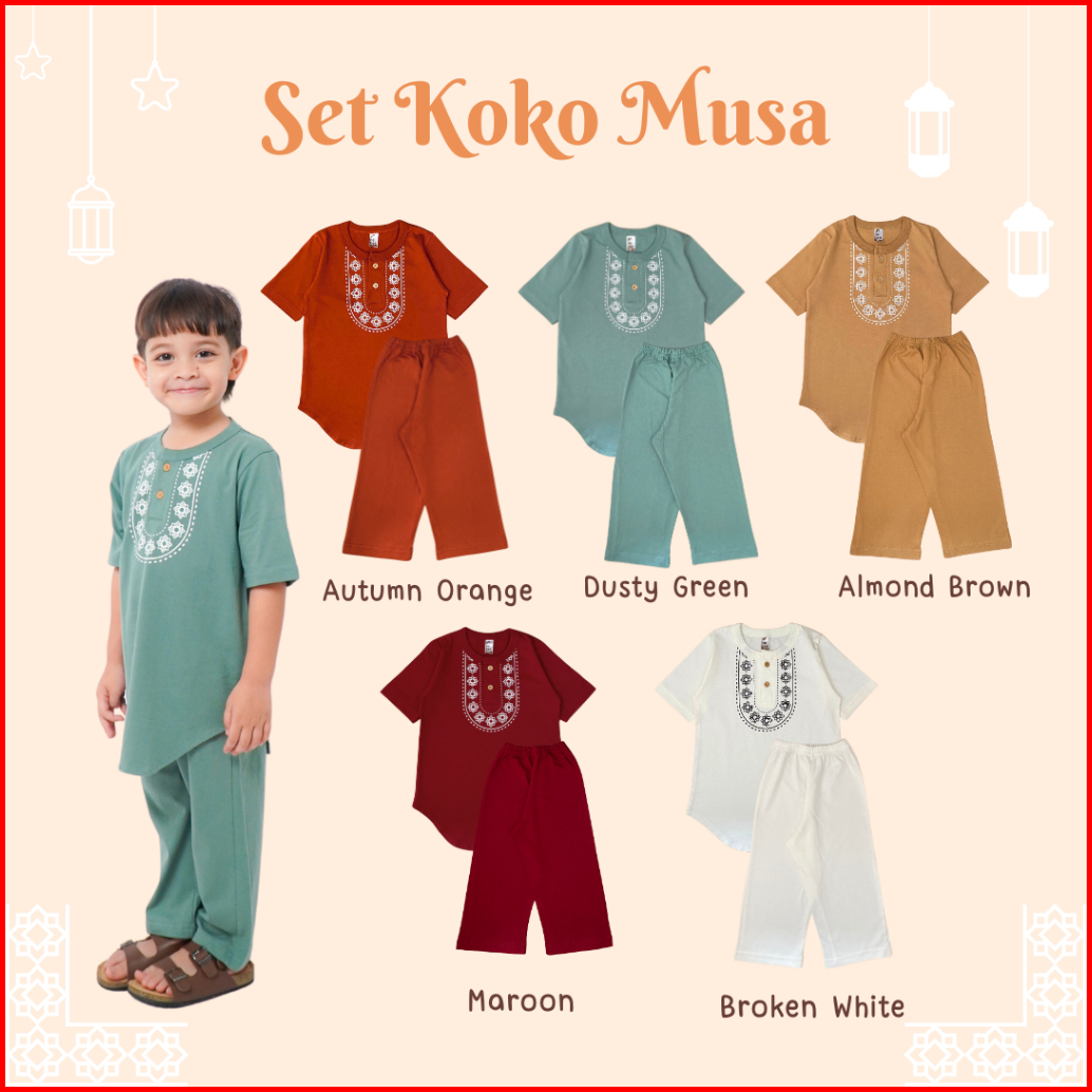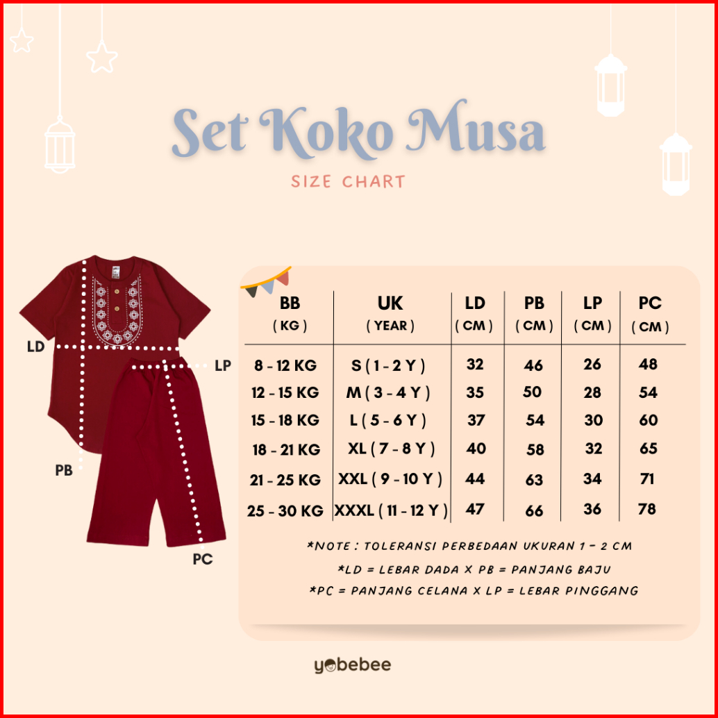Yobebee Setelan Koko Musa Anak Laki Laki Usia 2 3 4 6 8 10 12 Tahun Baju Muslim One Set Anak Cowok