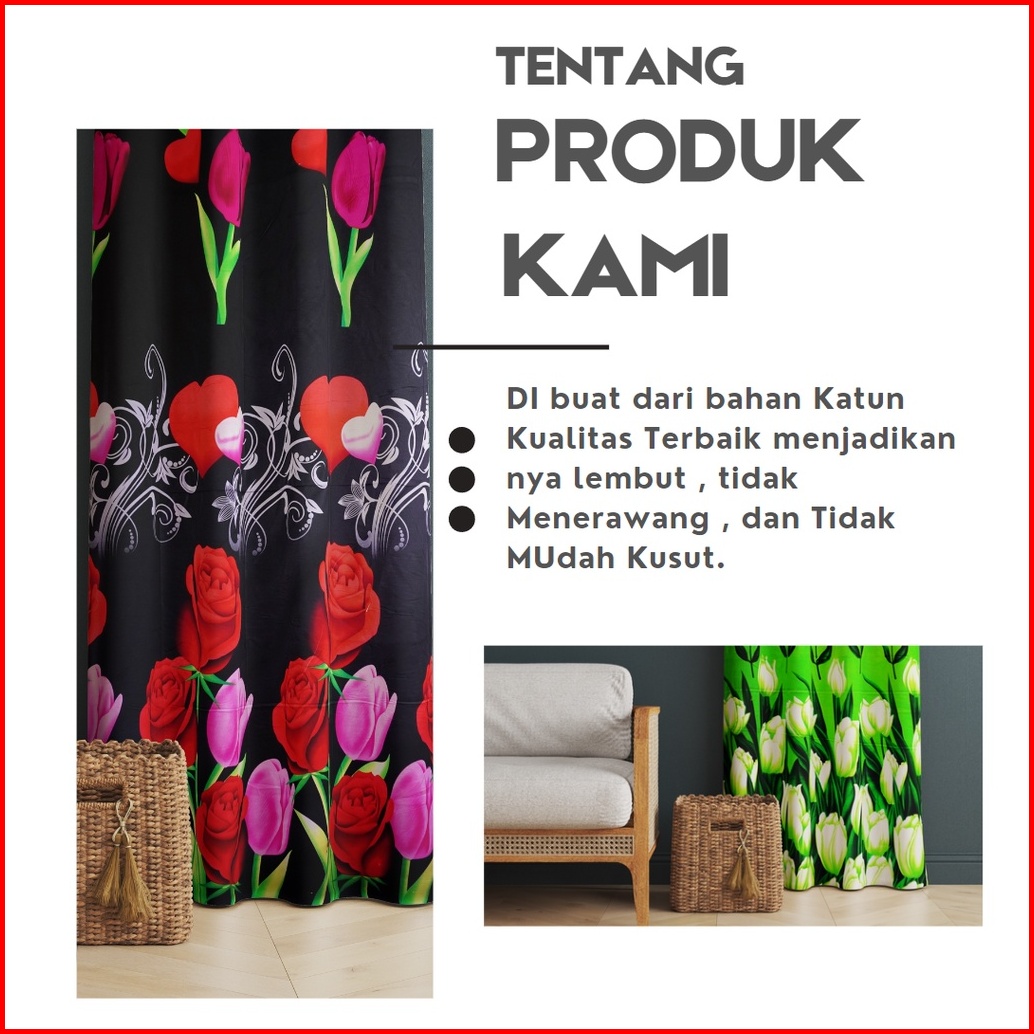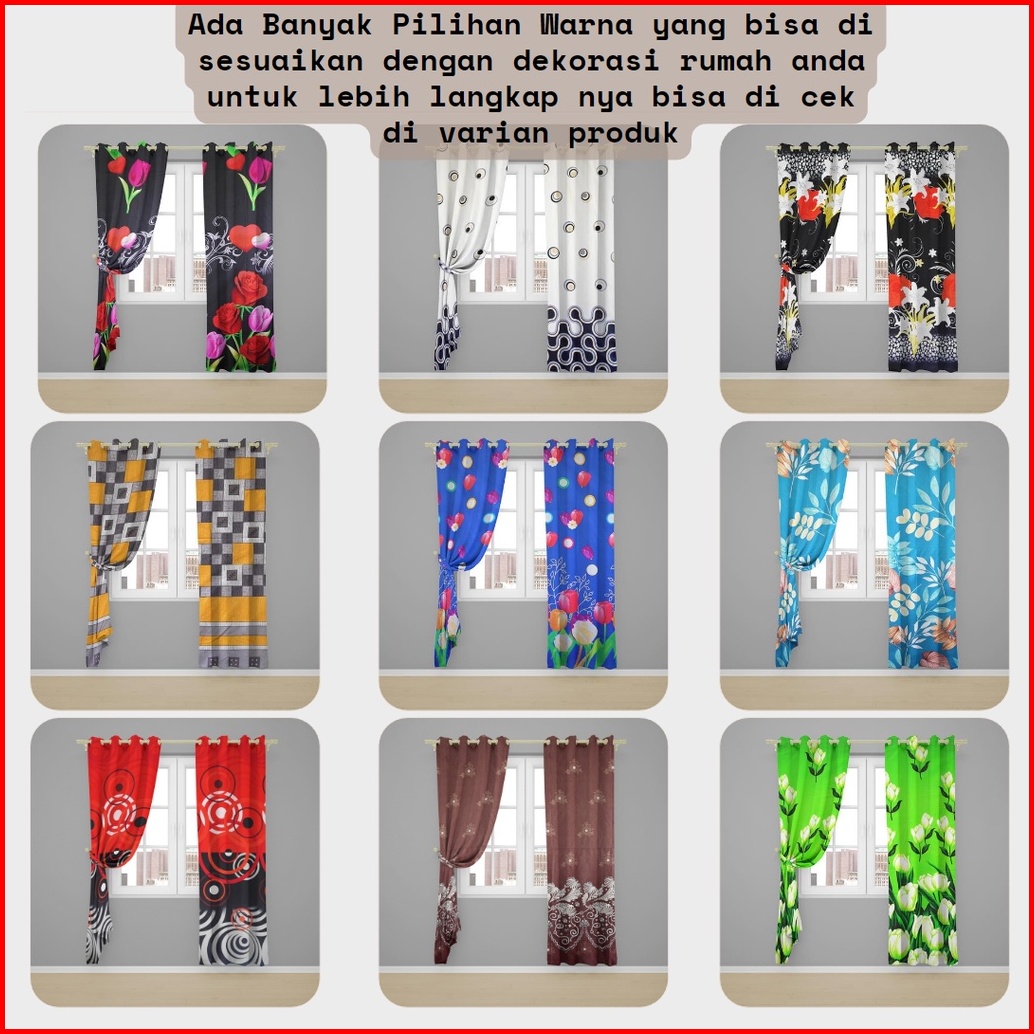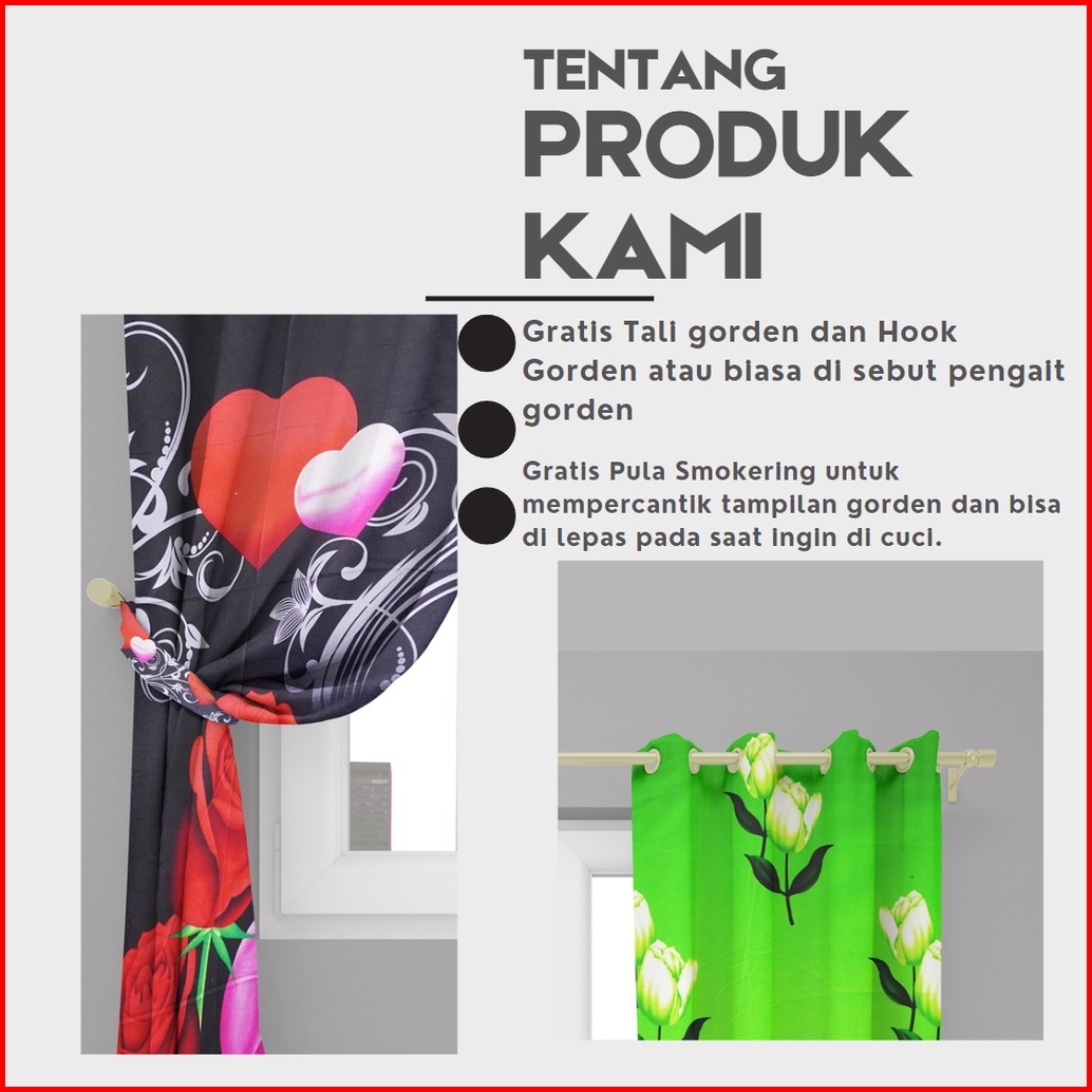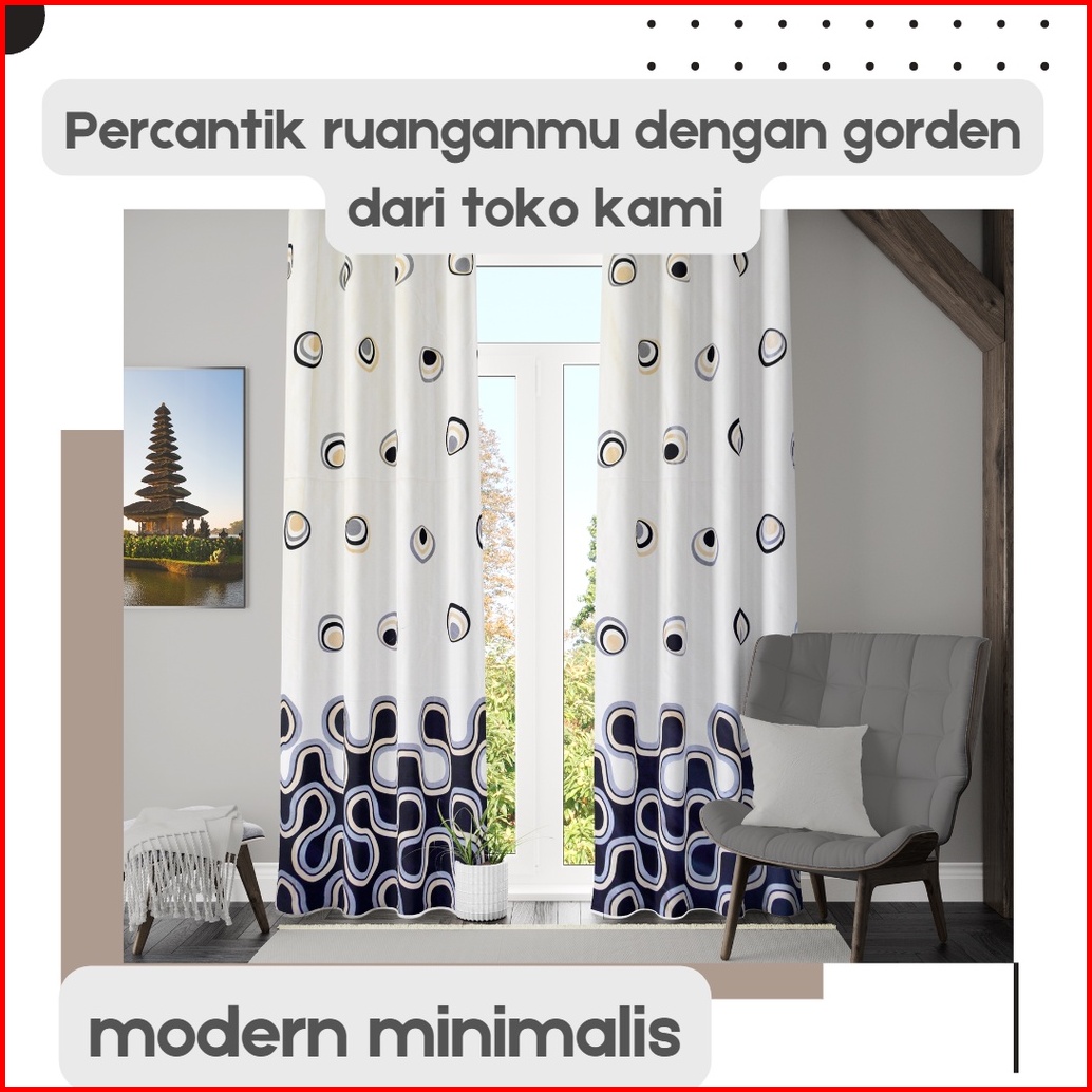 Gorden Hordeng Tirai Smockring Motif Elegan Free Hook Tali Ukuran Tinggi 225cm