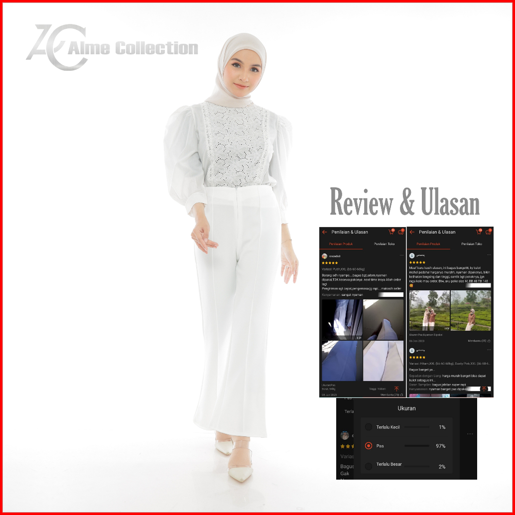 Hitam, Coksu, BW/Putih Tulang, Fuschia, Hijau armi, Navy, Putih, Mocca, Krem, Sage, Abu-abu, Biru Denim, Ivory, CACAT, warna random