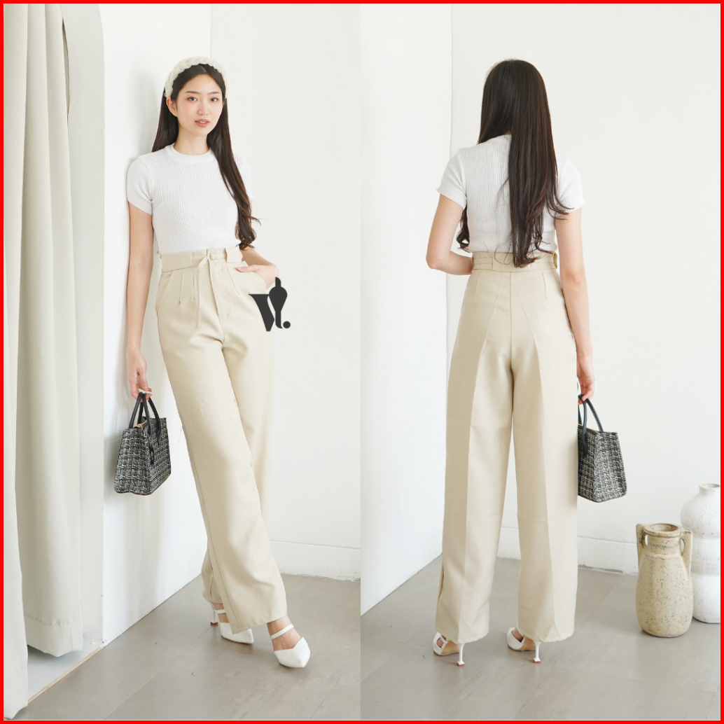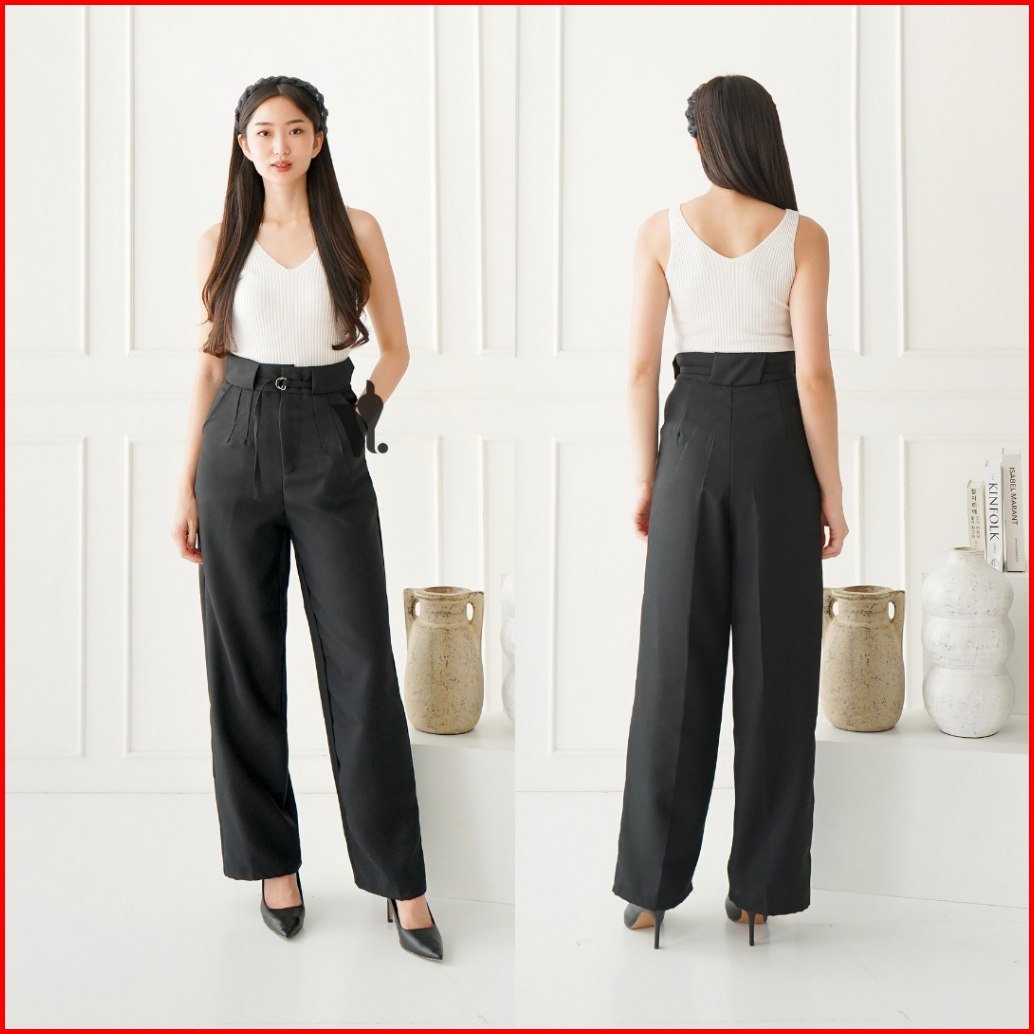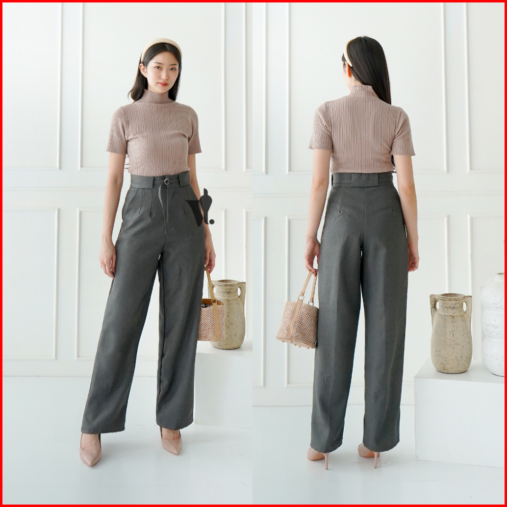 Veyn Livery - Loora Pants Highwaisted Celana Kantor Wanita Elegan Pinggang Tinggi Non Stretch Celana Panjang Wanita