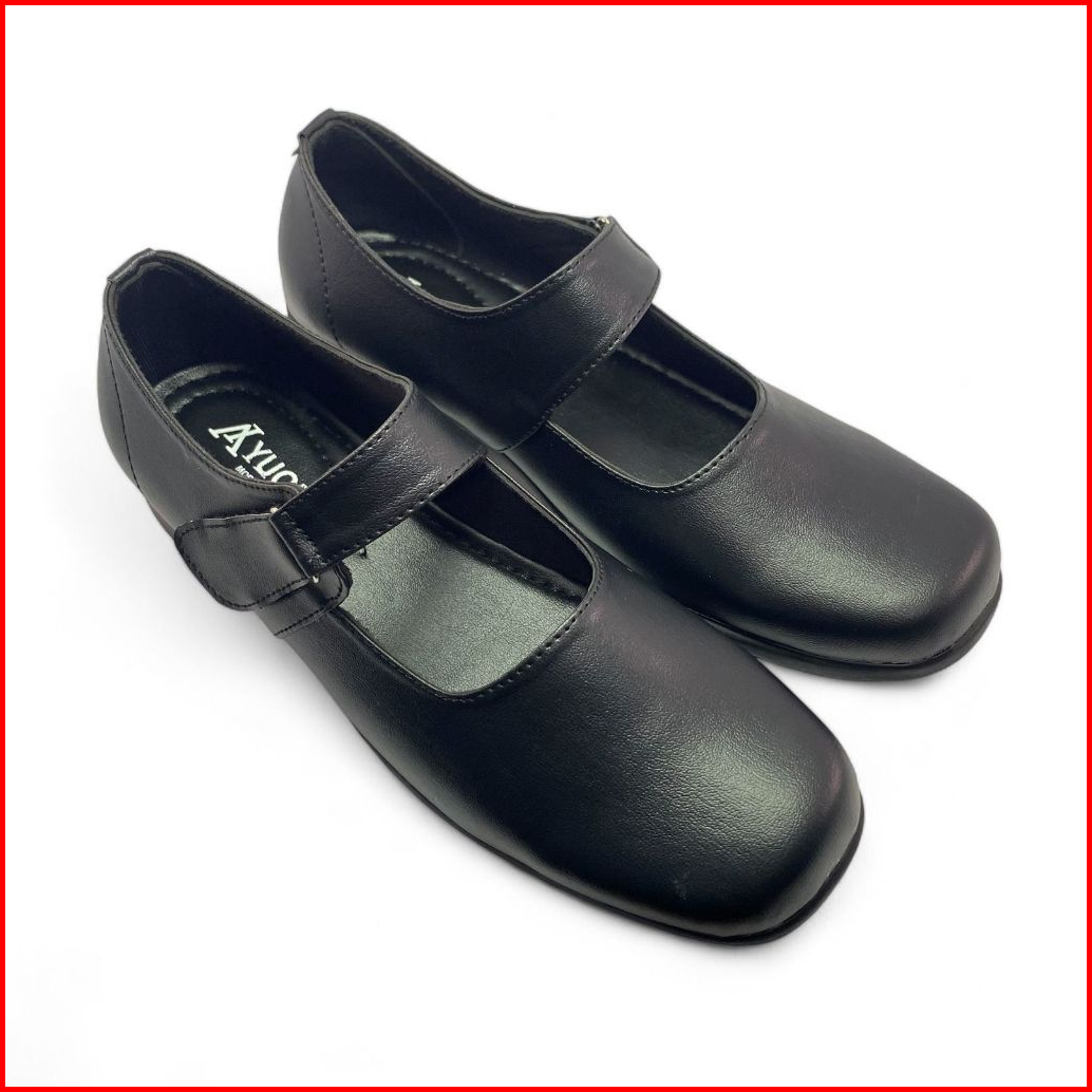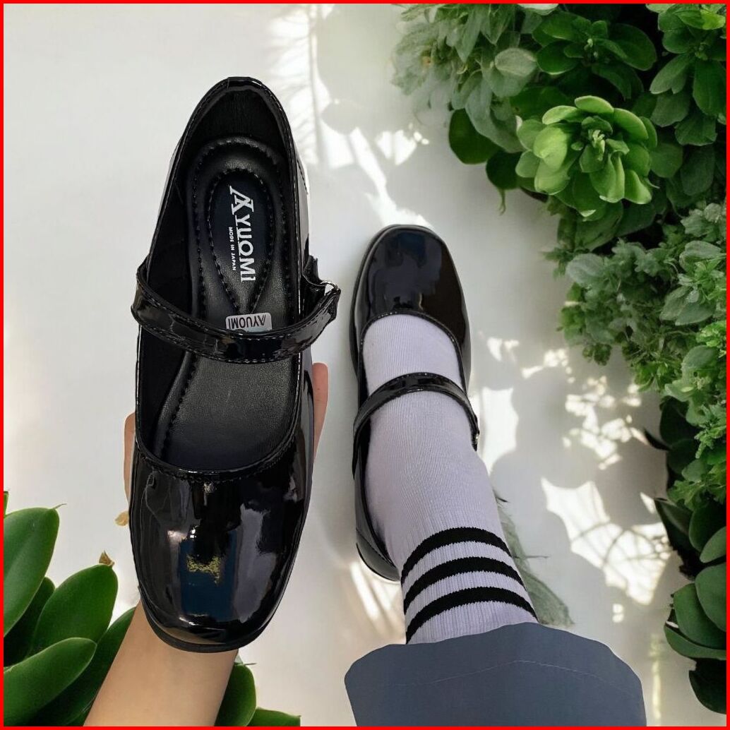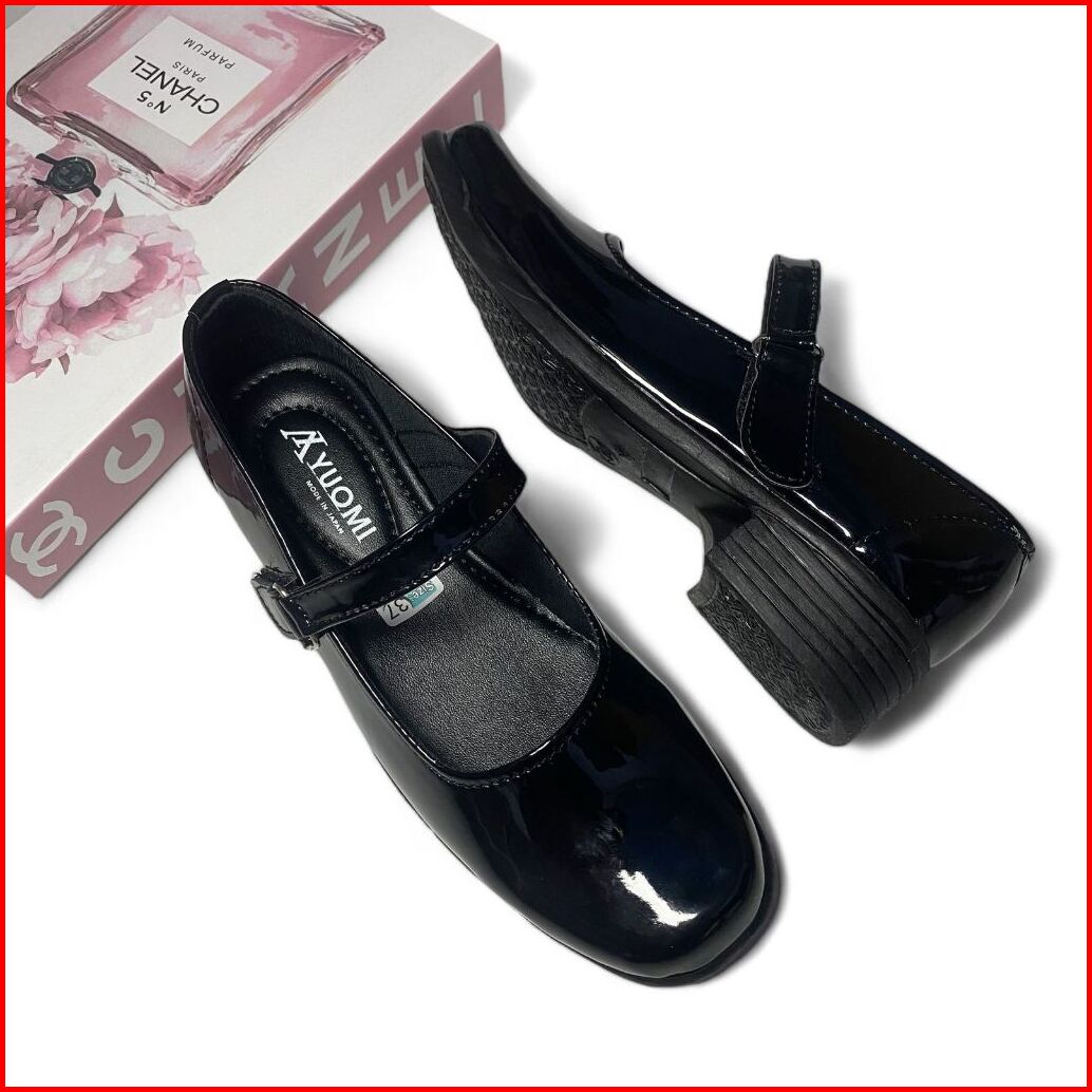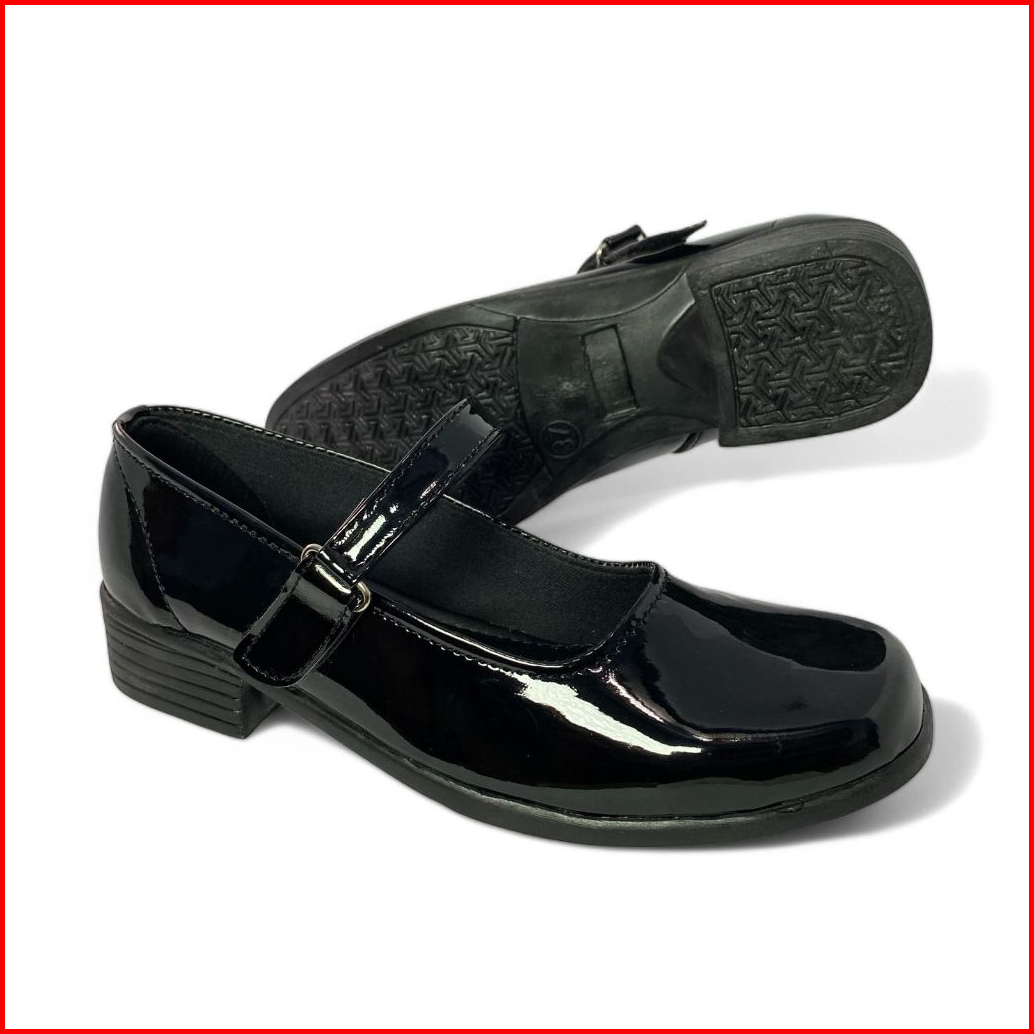 Yuomi Sepatu Pantofel Wanita Paskibra Hitam Glossy Hak 3cm