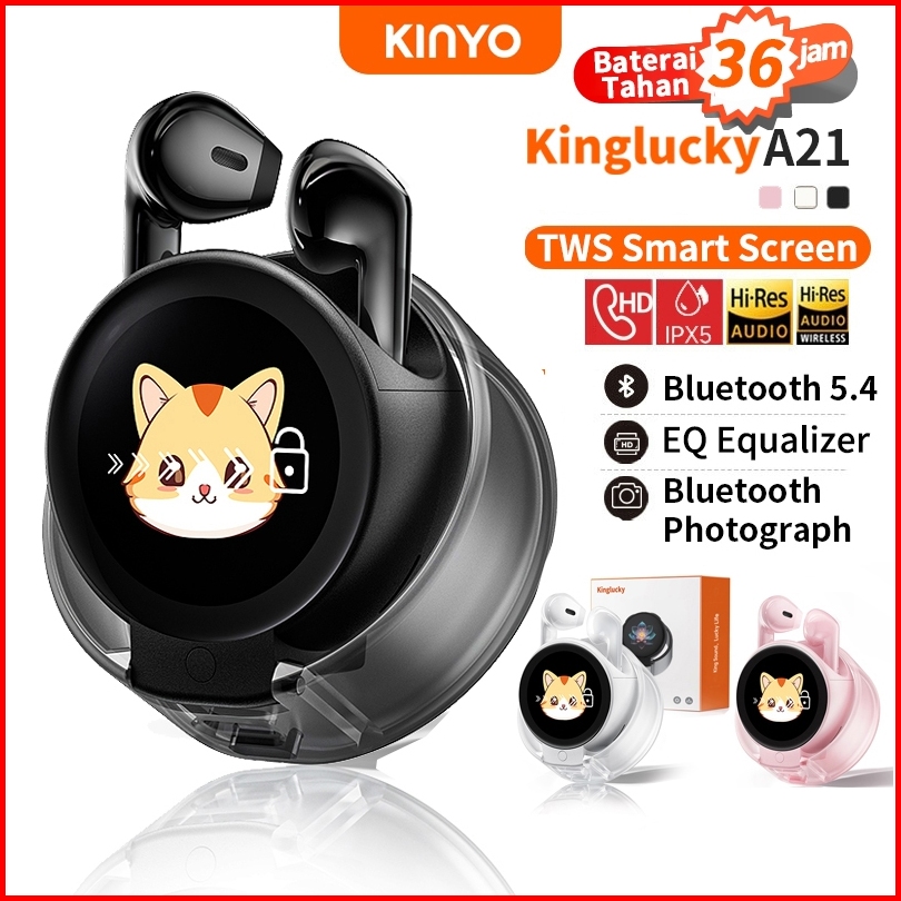 Kinyo A21 Headset Bluetooth 5.4 Tws Bluetooth Wireless Multifungsi Led Layar Penuh Warna Touch Screen Gaming Tanpa Delay