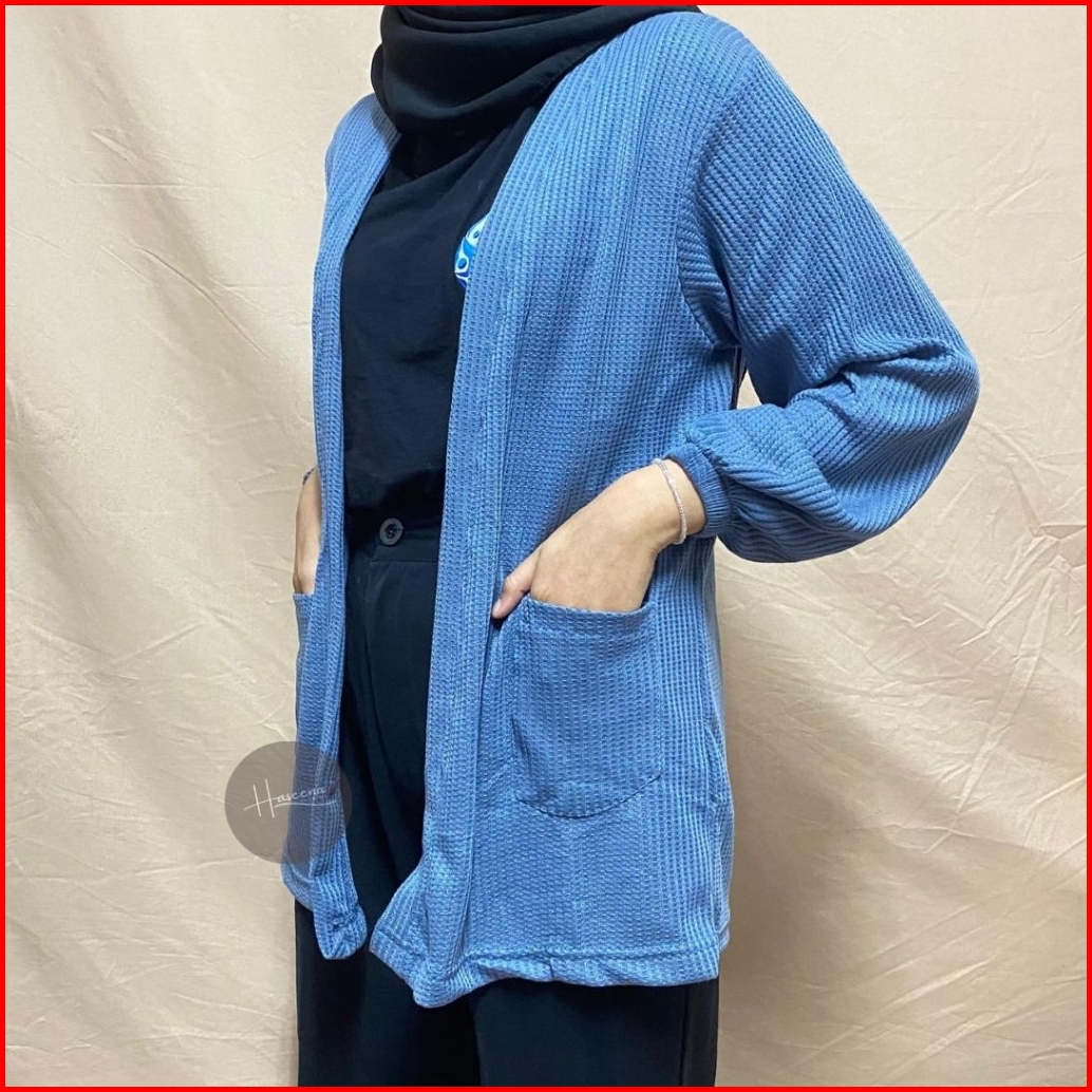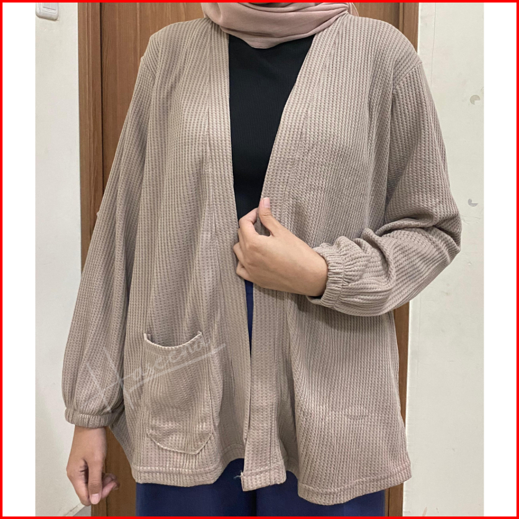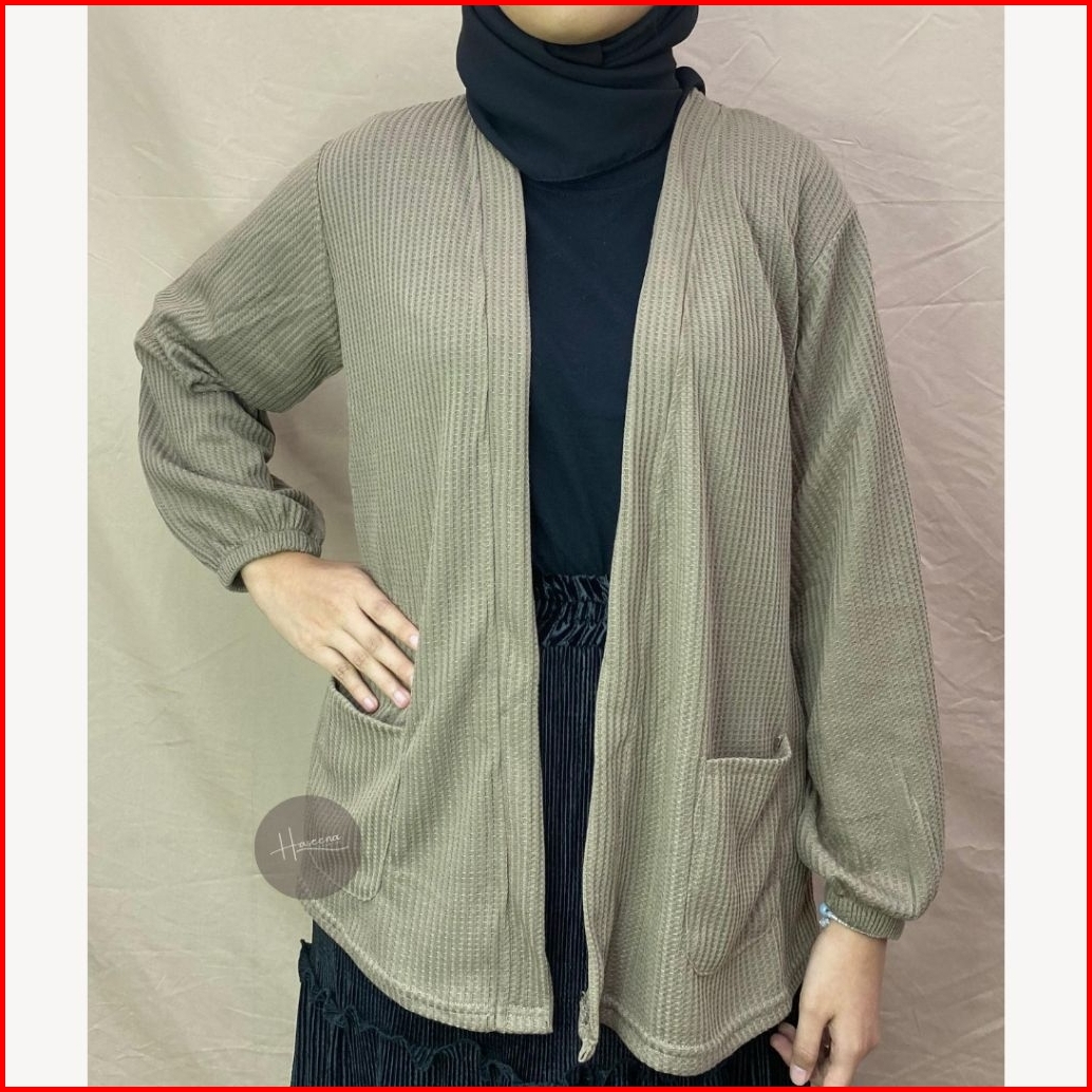 Haseena Cardigan Polos Ayra Outer Wafle Saku Lengan Balon Oversize Jumbo