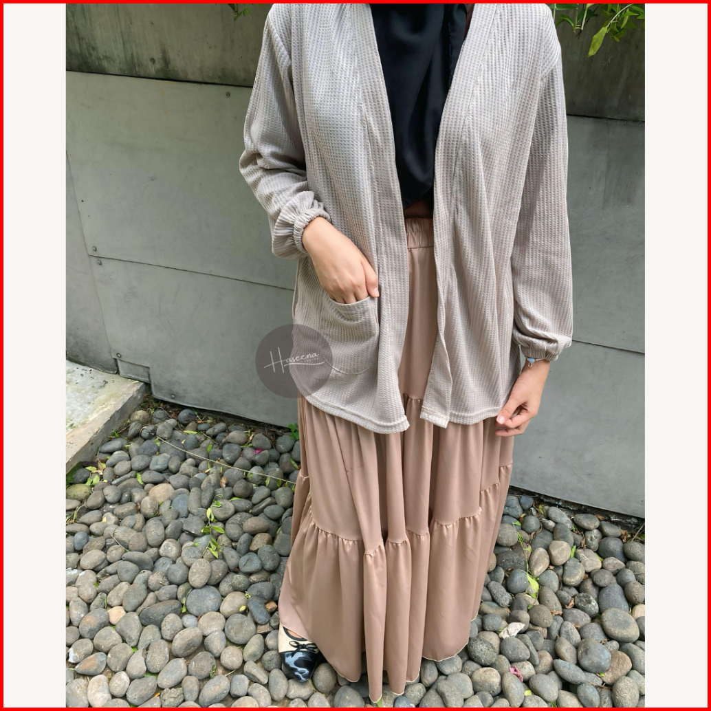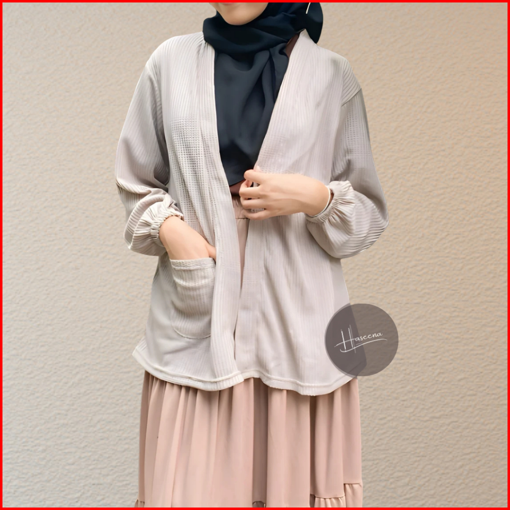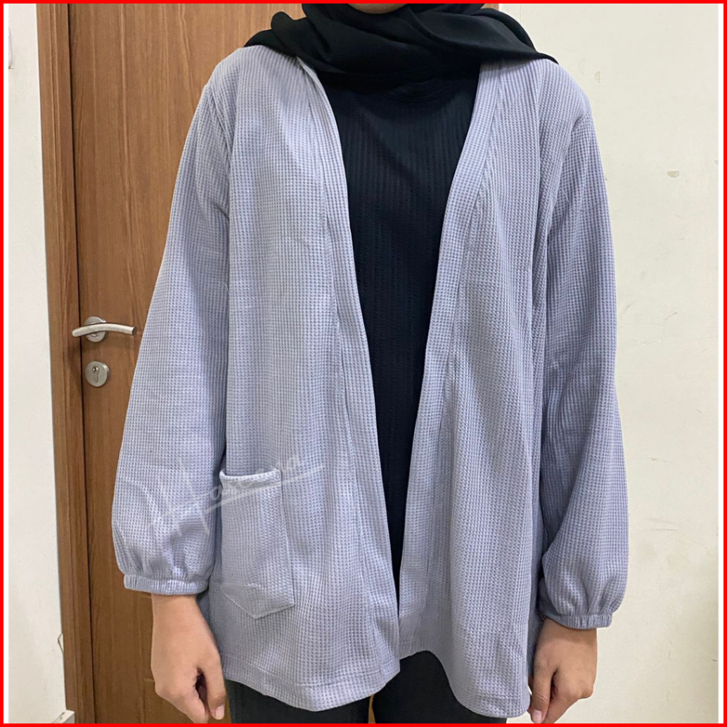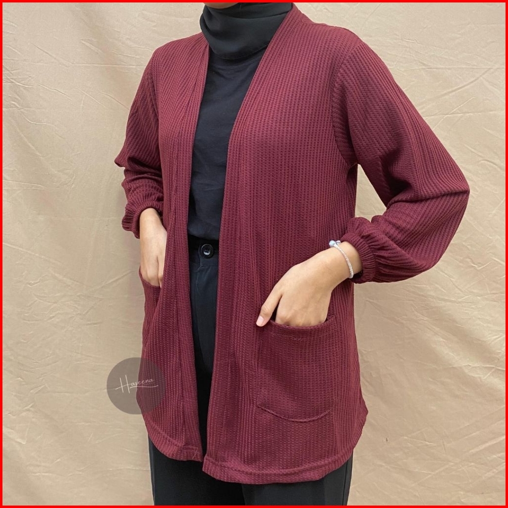 Haseena Cardigan Polos Ayra Outer Wafle Saku Lengan Balon Oversize Jumbo