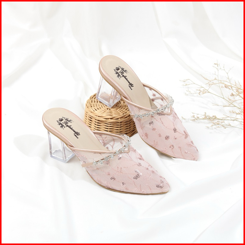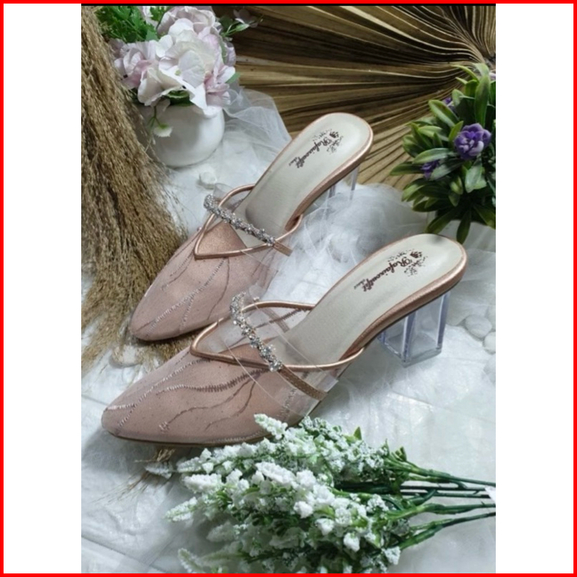 Sepatu Pesta Wisuda Elegant Azwa Rosegold 7cm Heels Kaca