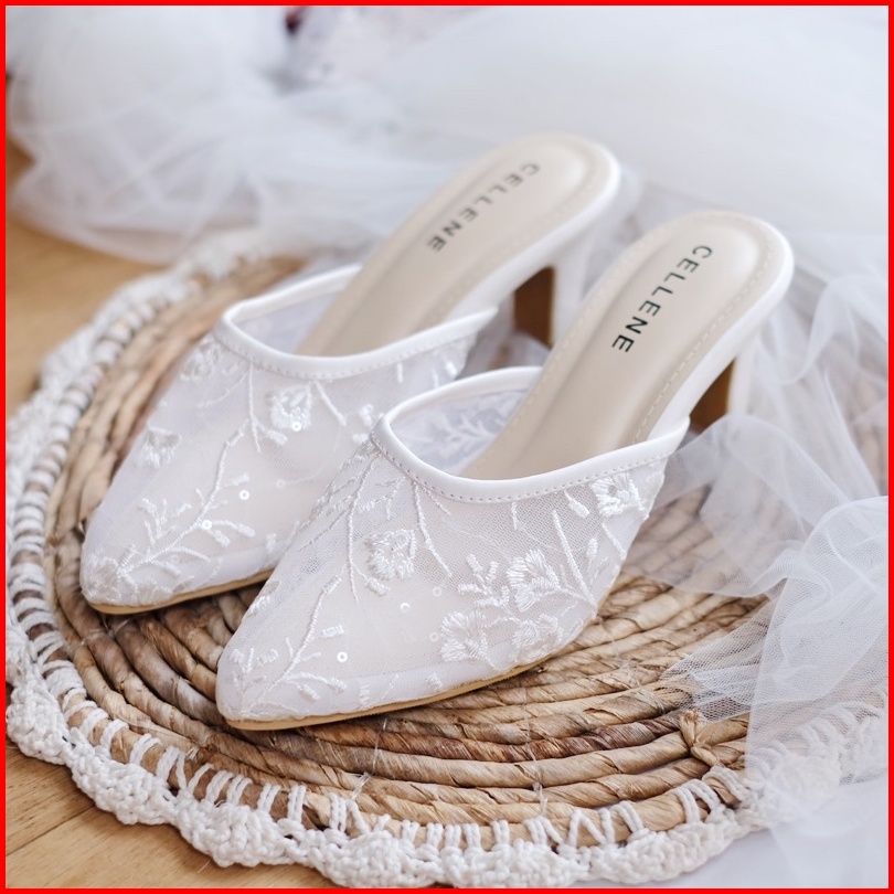 Fuji Simply Lace Heels 11 Colors Wedding Shoes Bassic 7cm Selop Brukat