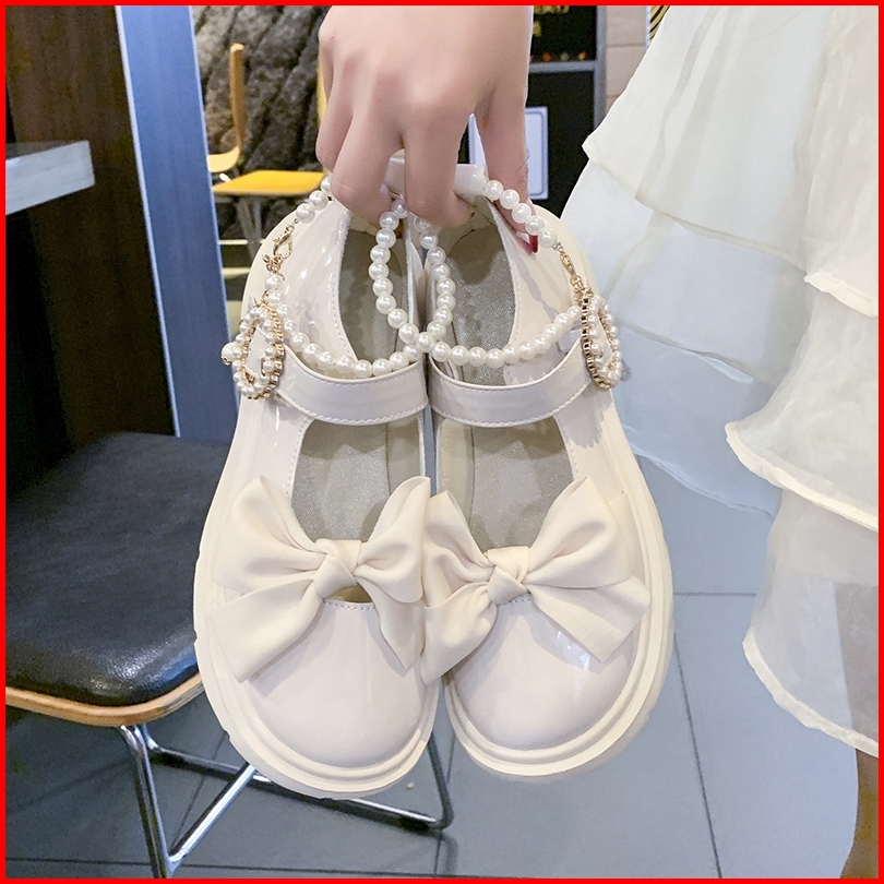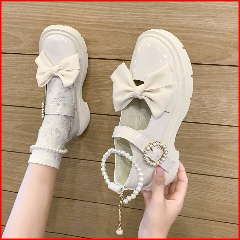 Sepatu Flat Mary Jane Shoes Hak Tahu Tinggi 4.5cm Slip On Selop Tali Wanita Sol Karet Import Hitam Putih Murah Premium N