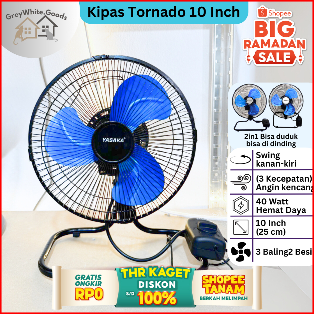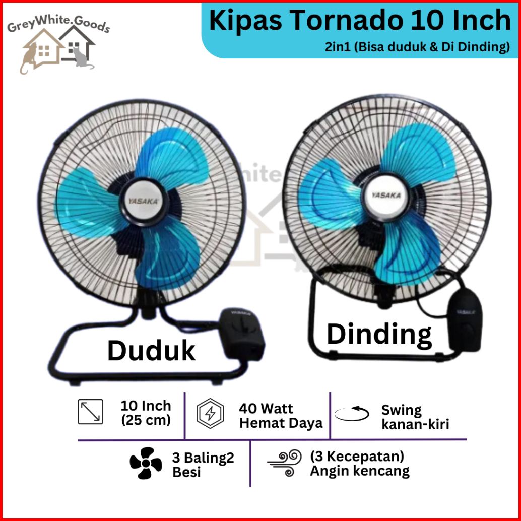 Kipas Angin Besi 2in1 Garansi Duduk Dinding Tornado 10 Inch Hemat Daya Angin Kencang