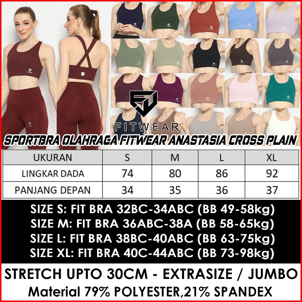 Fitwear - Sportbra Olahraga Wanita Anastasia Cross Plain - Part 2 - S - Xl