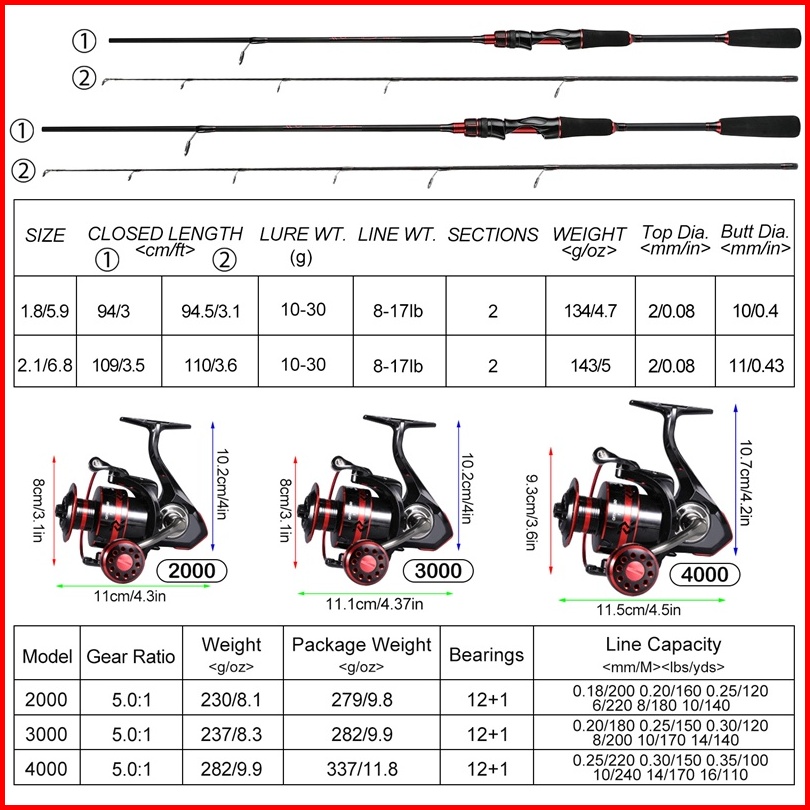 Sougayilang Joran Pancing Set 1.8 2.1m Joran Dan 2000-7000 Full Metal Reel Pancing Joran Set Lengkap