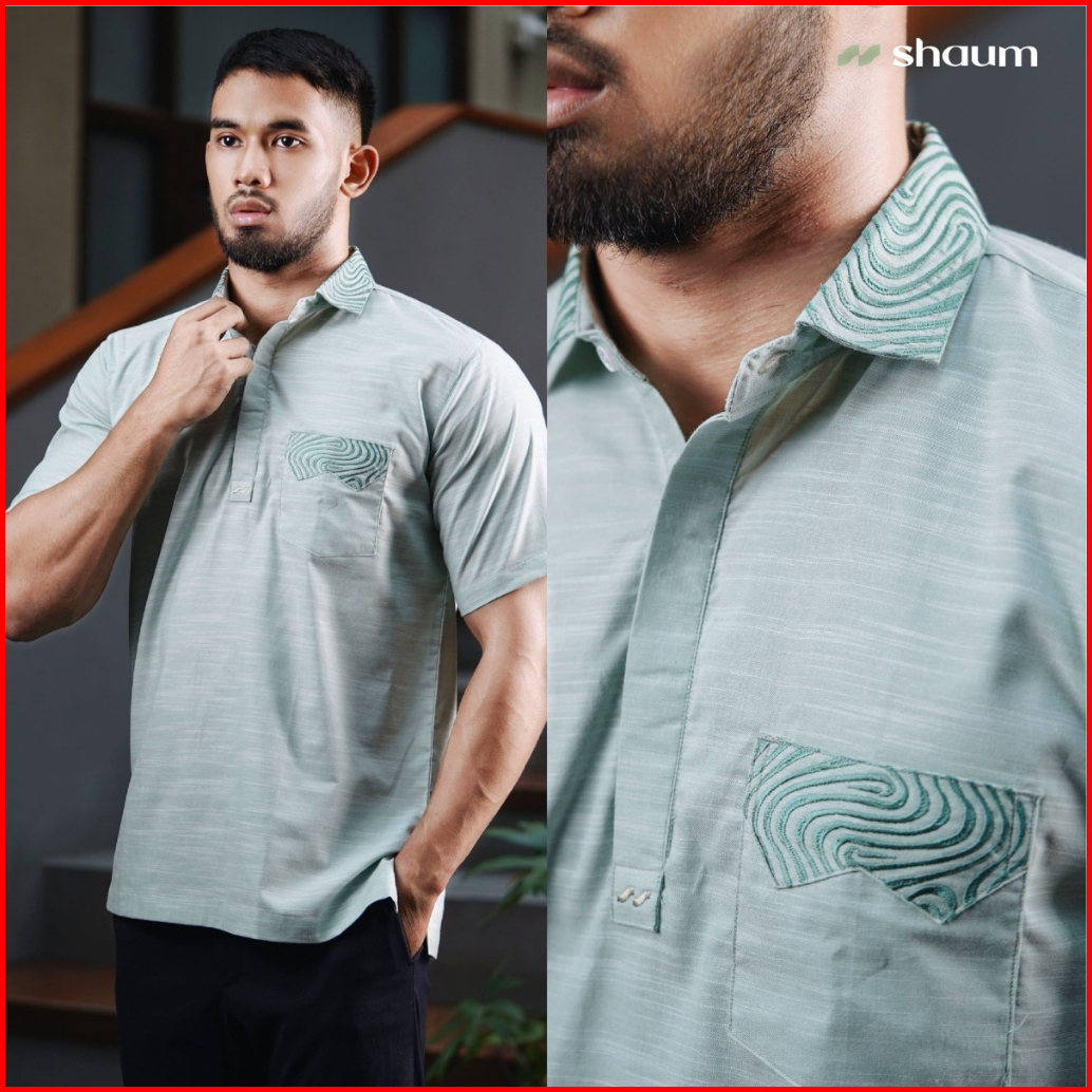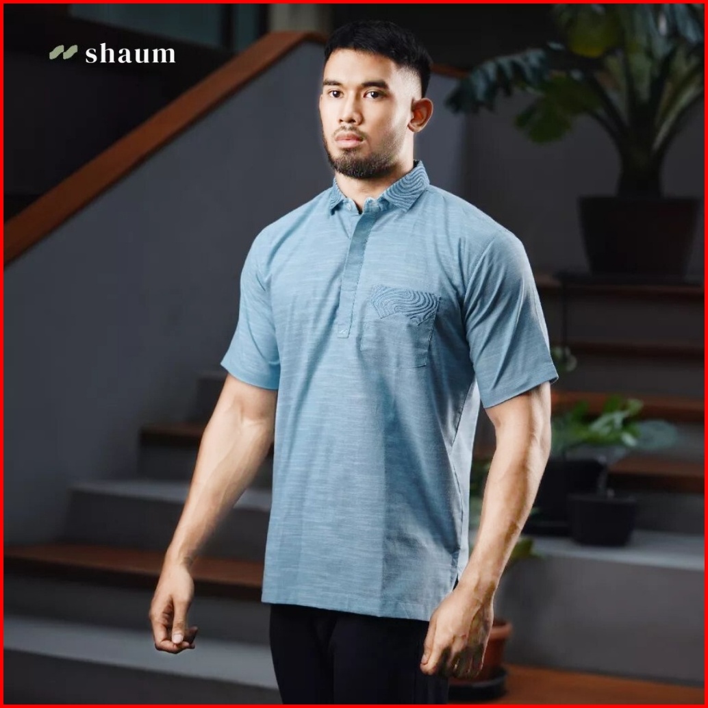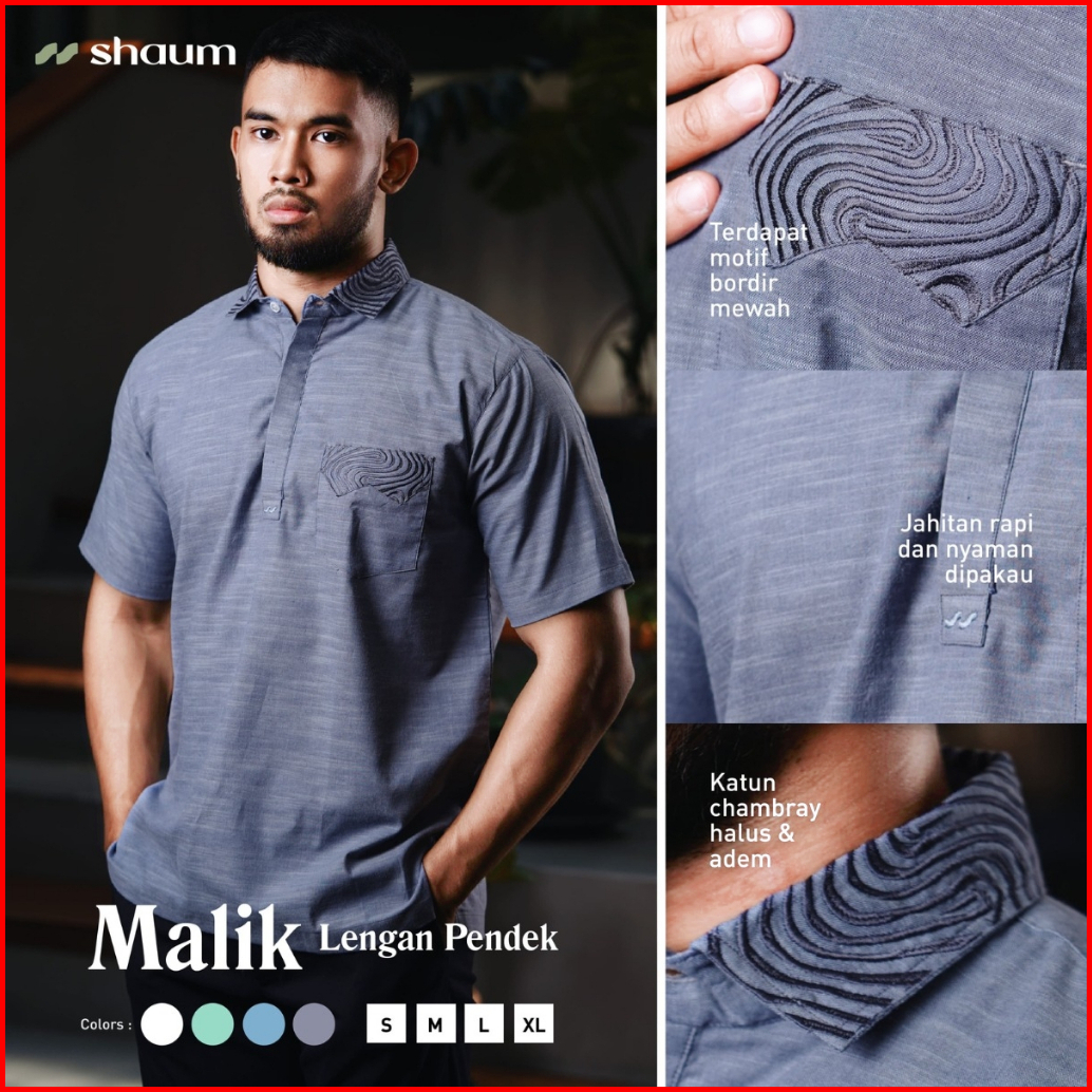 Muslimadani X Shaum Baju Koko Malik Kemeja Casual Pria Dewasa Lengan Pendek