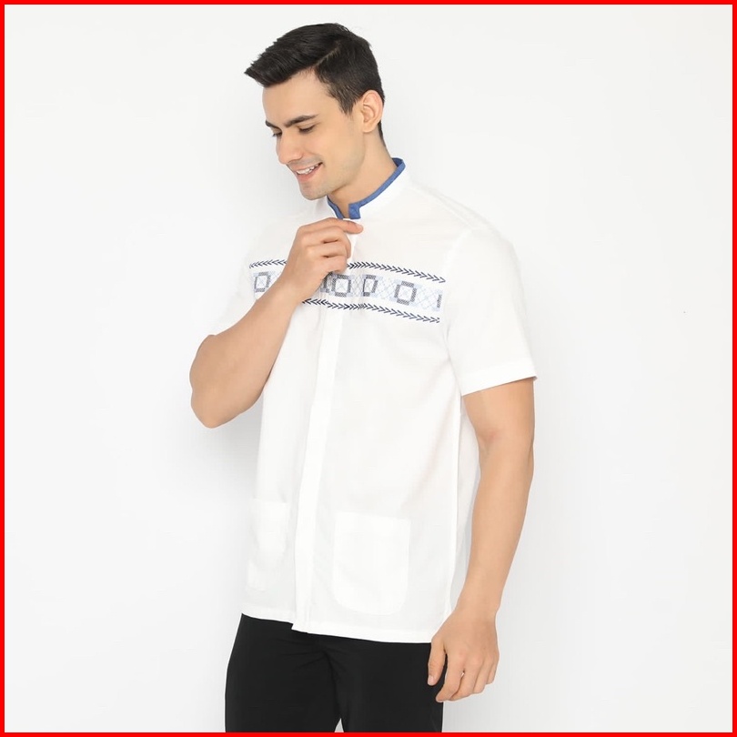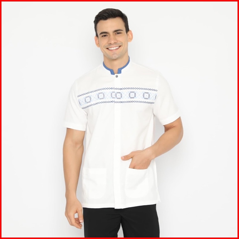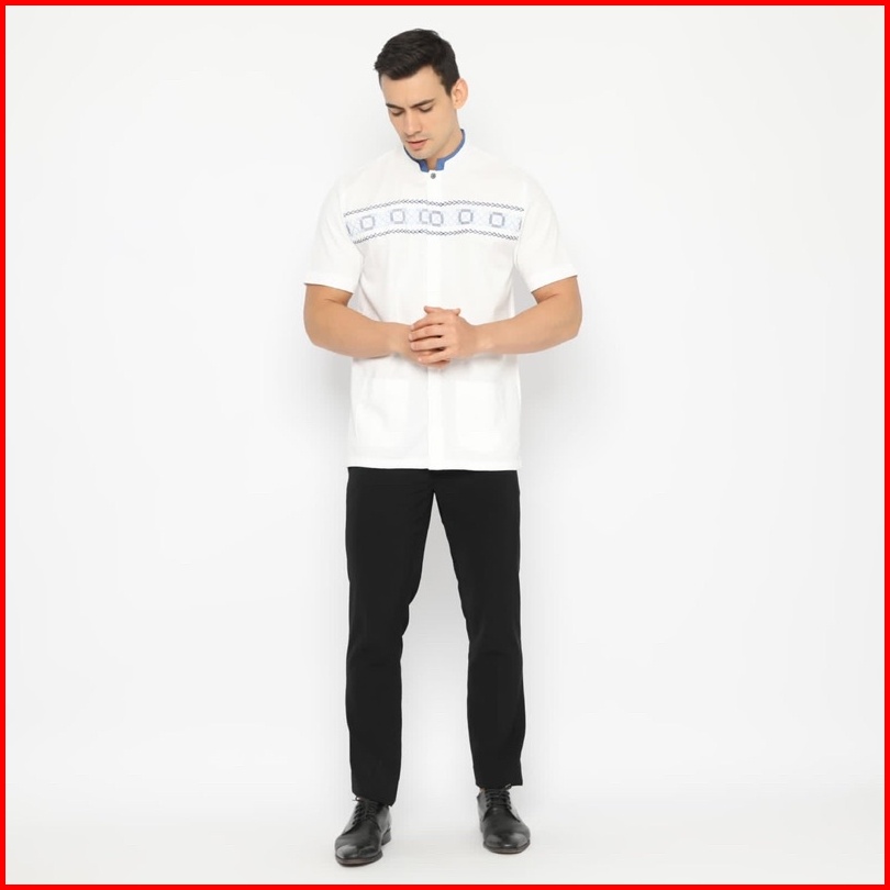 Code Male Baju Koko Bordir Premium Bahan Oxford Putih Kerah Kombinasi Art2201