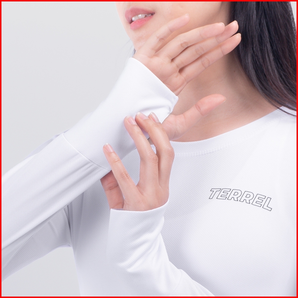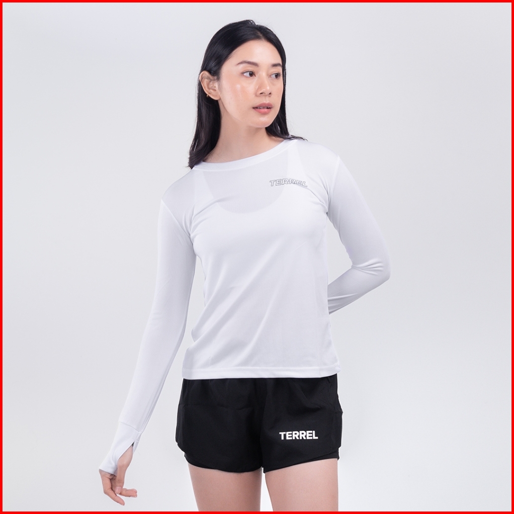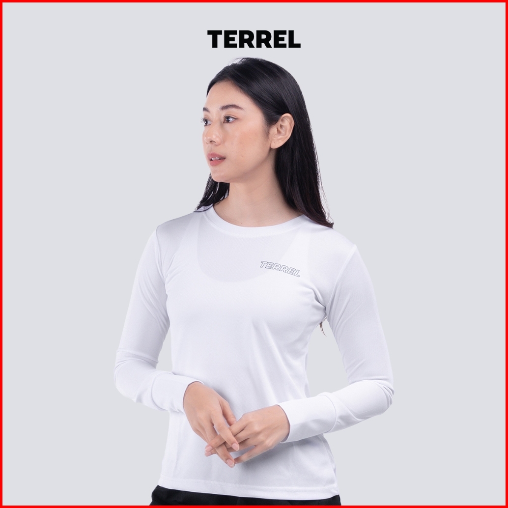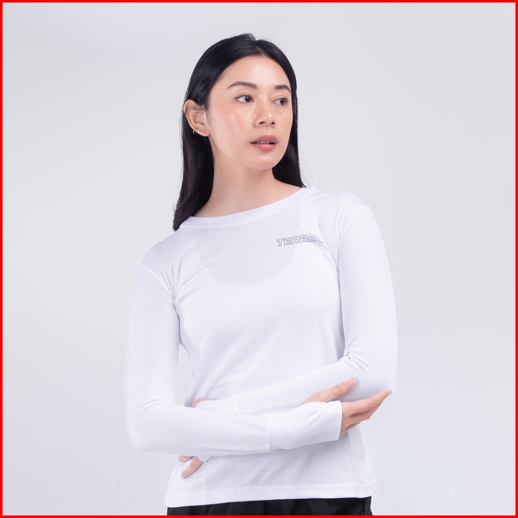 Terrel Sportswear Basic Long Sleeve White Women Baju Atasan Lengan Panjang Kaos Olahraga Dry Fit Wanita Lari Running Gym