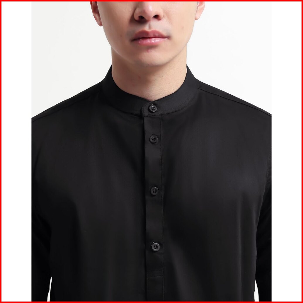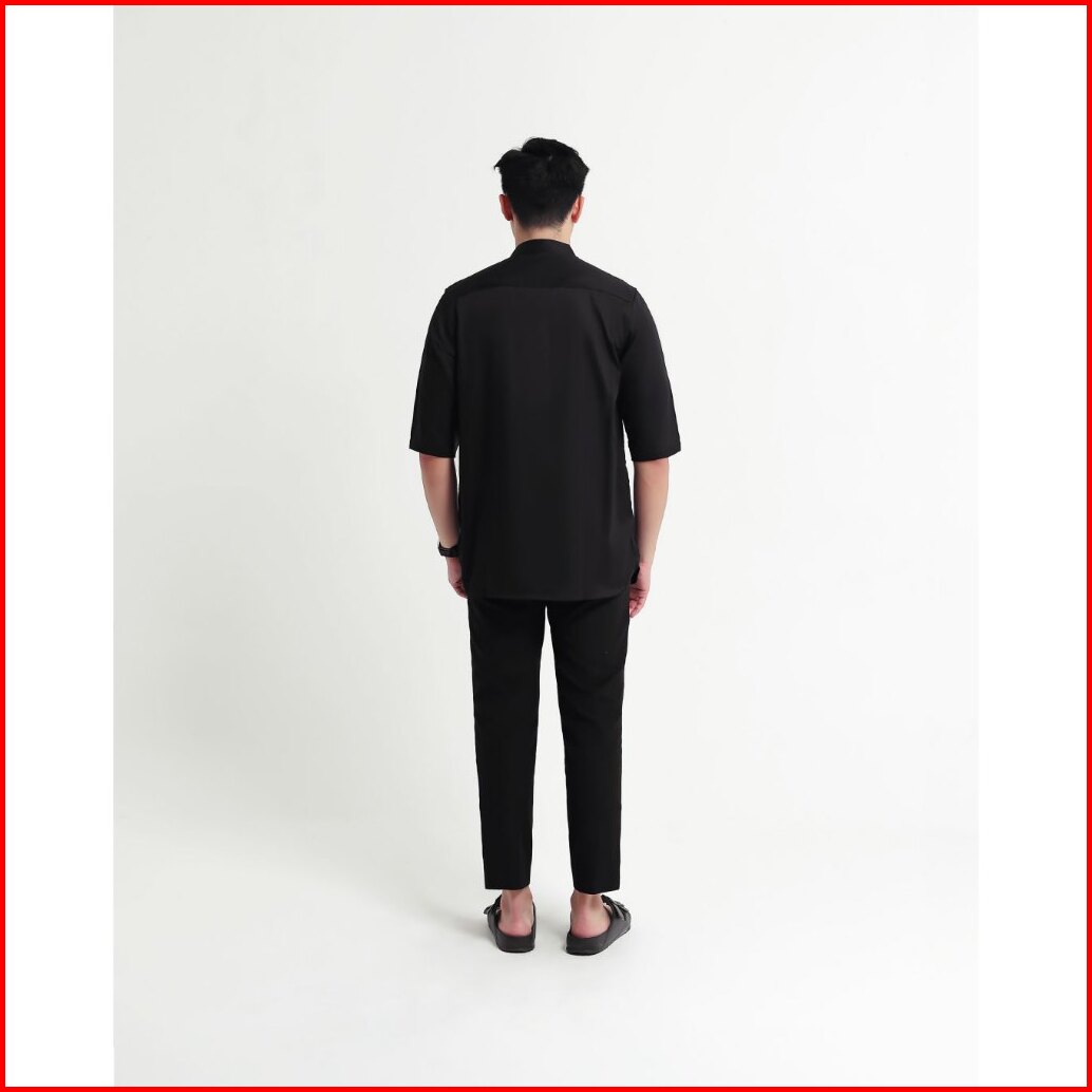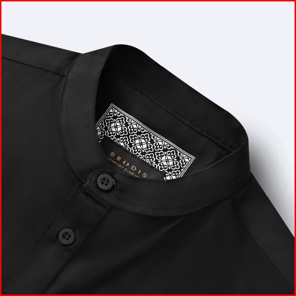 Broodis Kemeja Koko Kurta Pria Cotton Sateen Black Kerah Shanghai Lengan Panjang - Qudsy Black Series