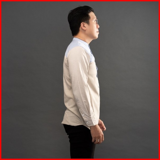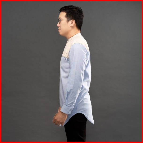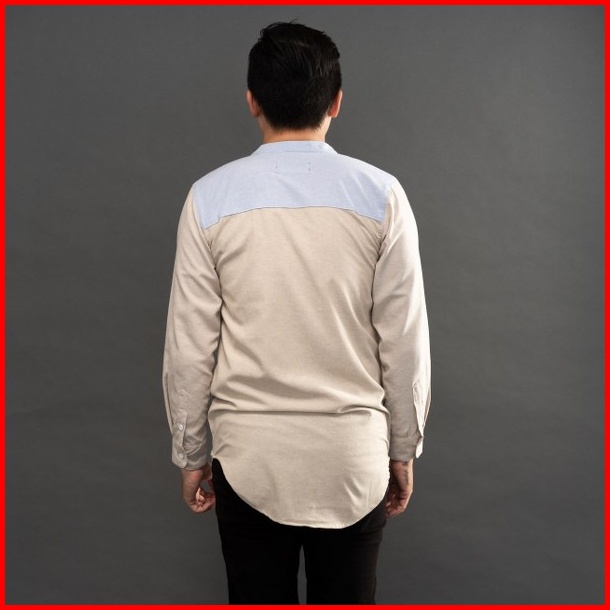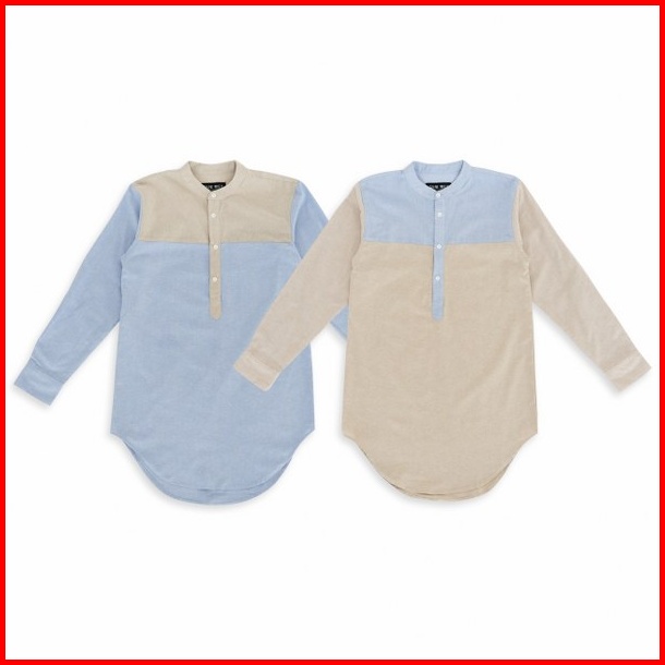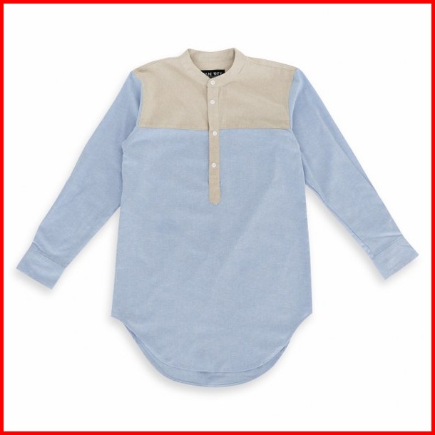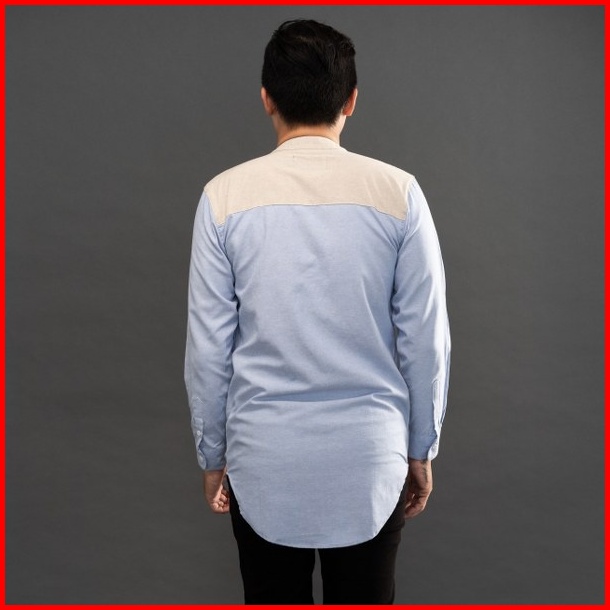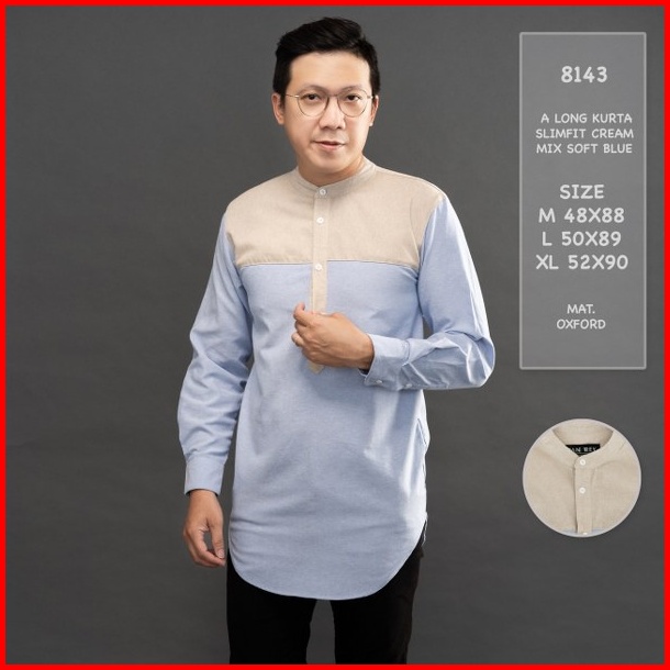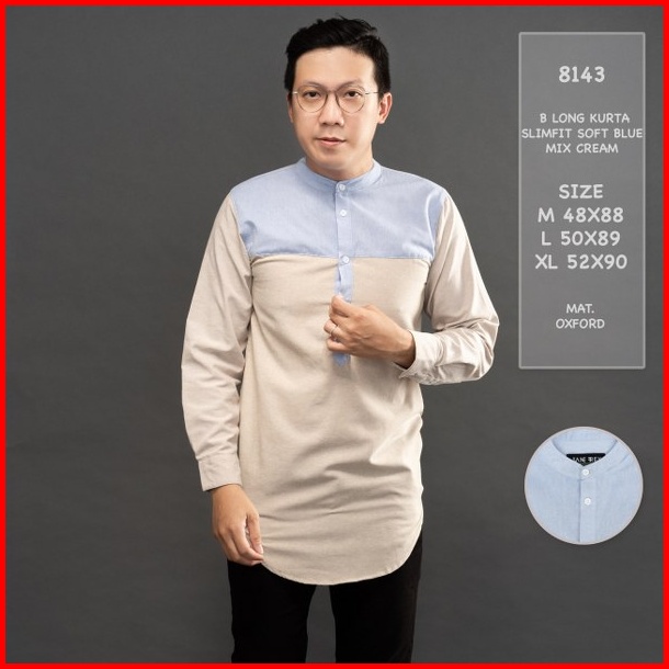Jane Frey Clothing Kurta Panjang Pria 8143 Long Kurta Slimfit Cream Mix Soft Blue Kemeja Kurta