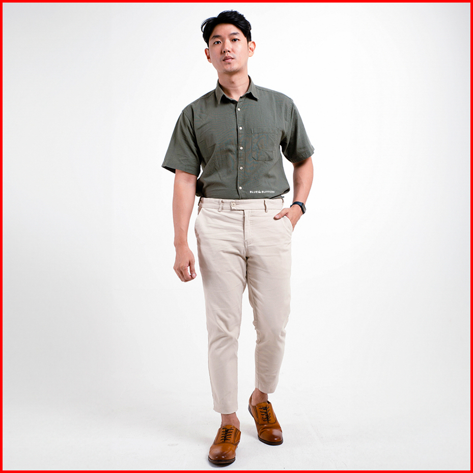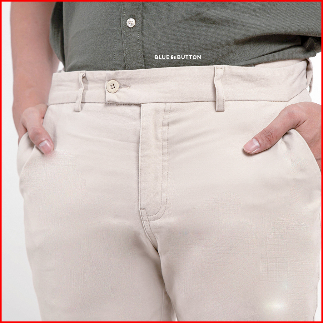 Bluebutton Celana Chino Ankle Pants Slim Fit Cream