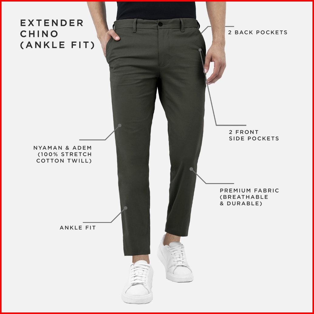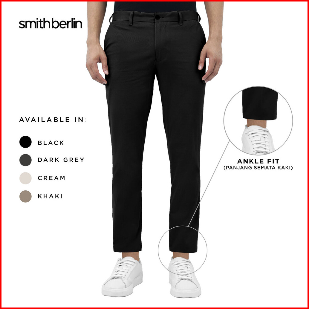 Smith Berlin Celana Panjang Pria Chino Extender Slim Fit Ankle Cut Katun Stretch Melar Kasual Kerja Extra4cm