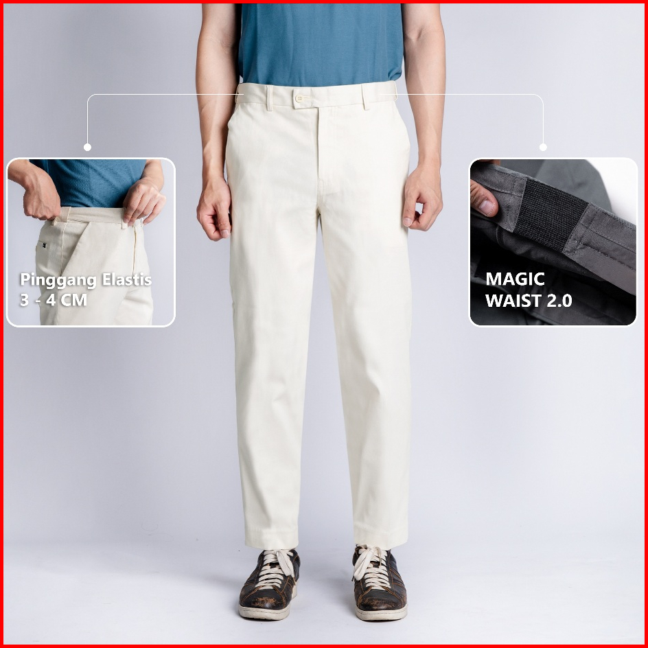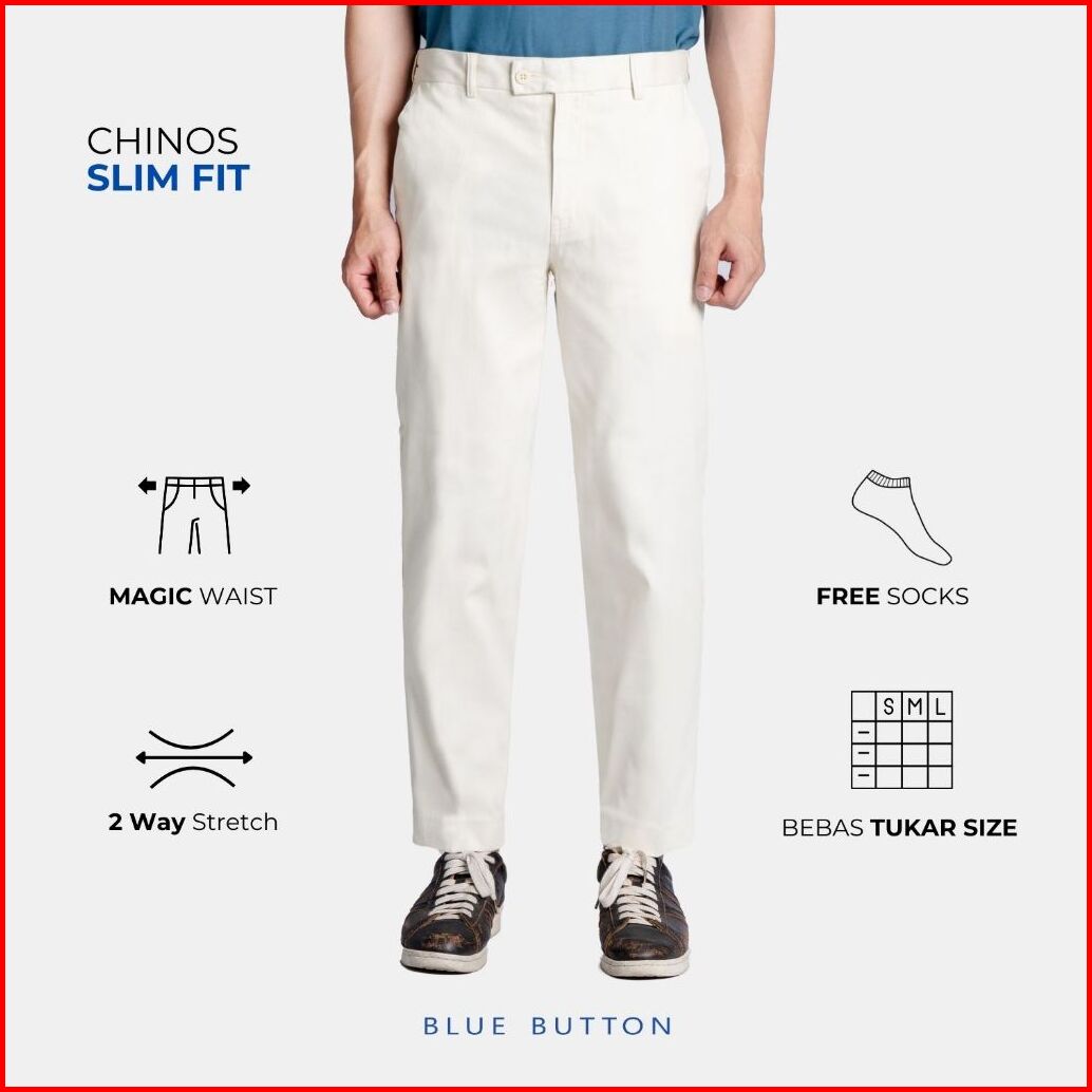 Bluebutton Celana Putih Pria Celana Chino Celana Ankle Pants Slim Fit Ivory White