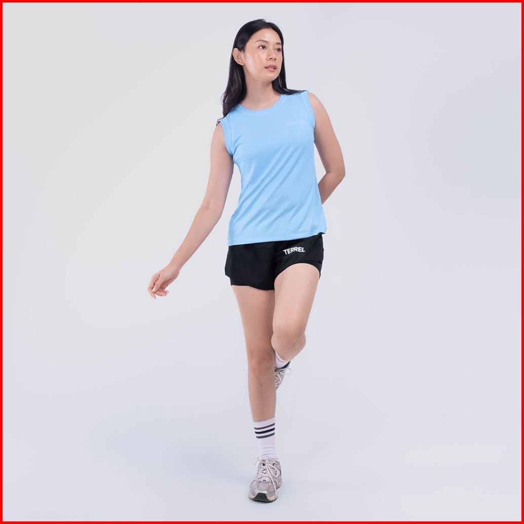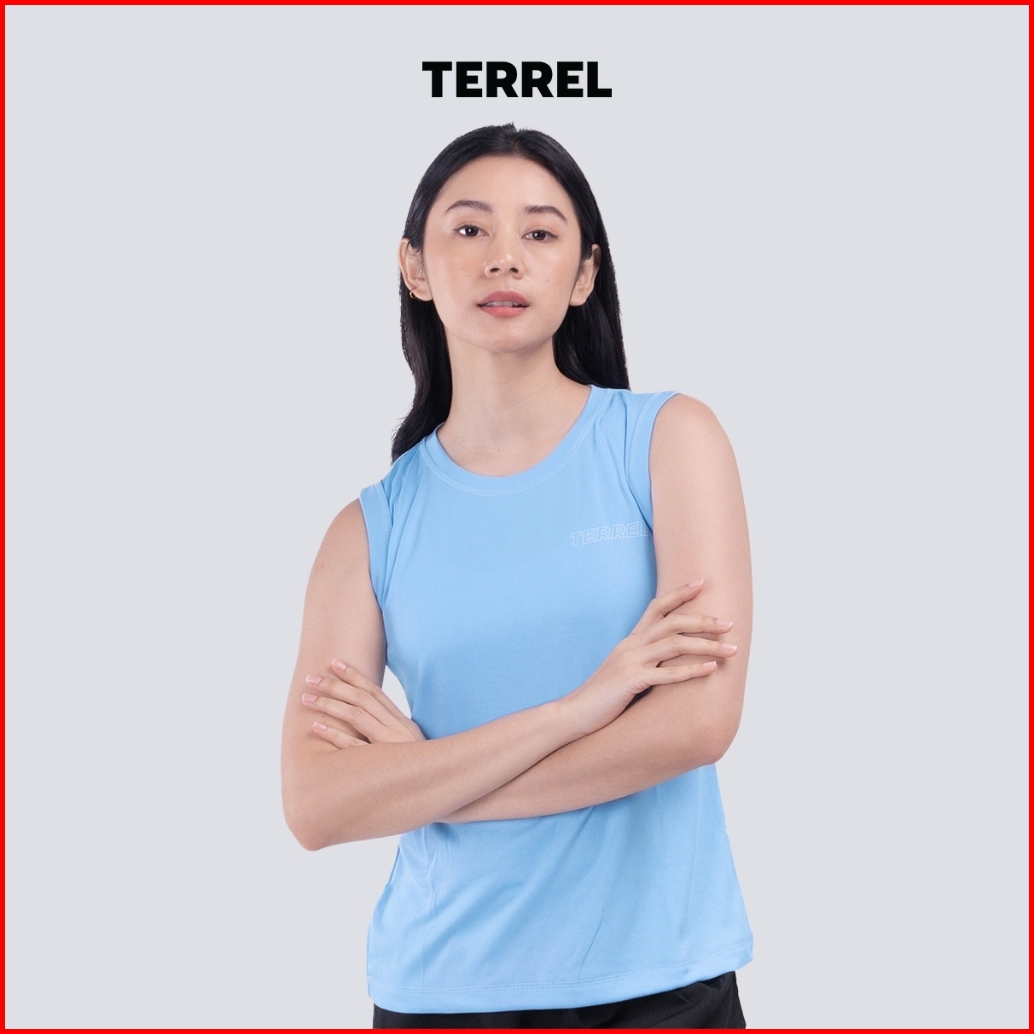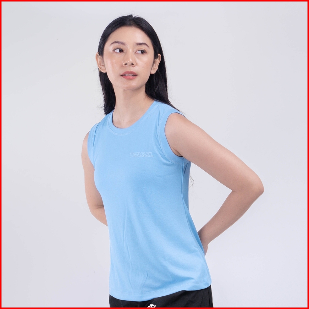Terrel Sportswear Basic Tanktop Sky Blue Women Sleeveless Baju Atasan Tanpa Lengan Kaos Olahraga Dry Fit Wanita Lari Run